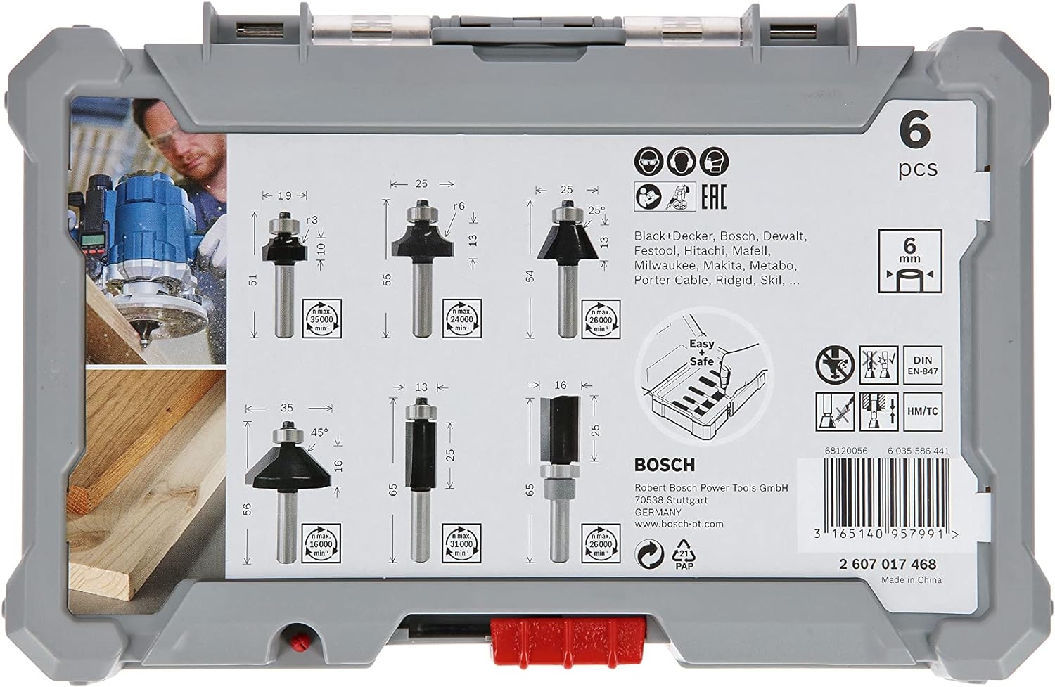 - Für Oberfräsen mit 6 mm Werkzeugaufnahme aller Elektrowerkzeugmarken