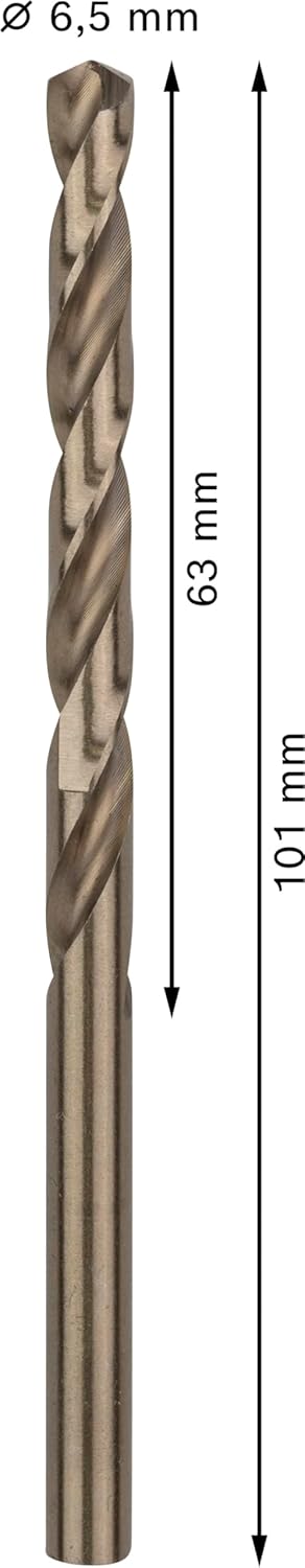 - Durchmesser x Arbeitslänge x Gesamtlänge: 6,5 x 63 x 101 mm, nach DIN 338