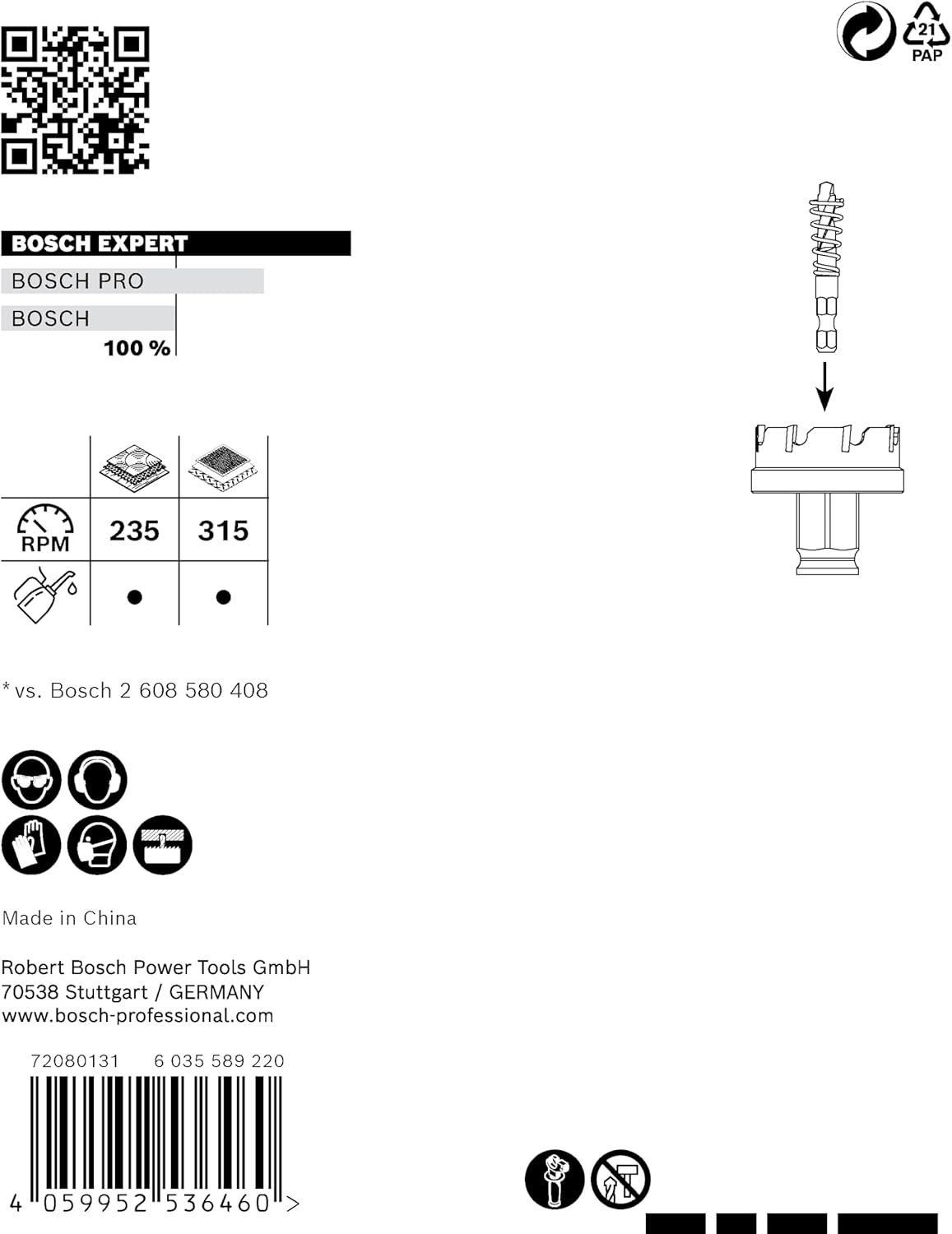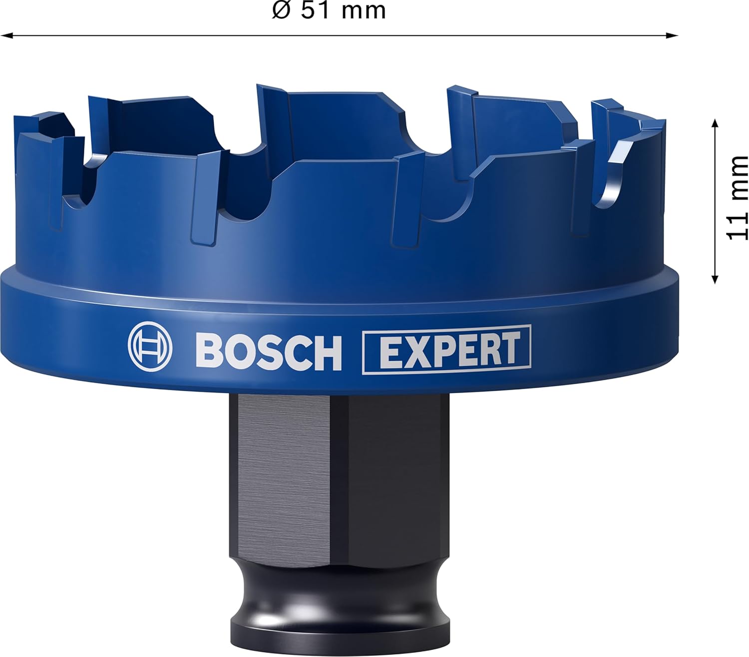 - Lieferumfang: Bosch Expert Sheet Metal Lochsäge, 51 x 40 mm, inklusive Zentrierbohrer HSS-Co und Auswurffeder
