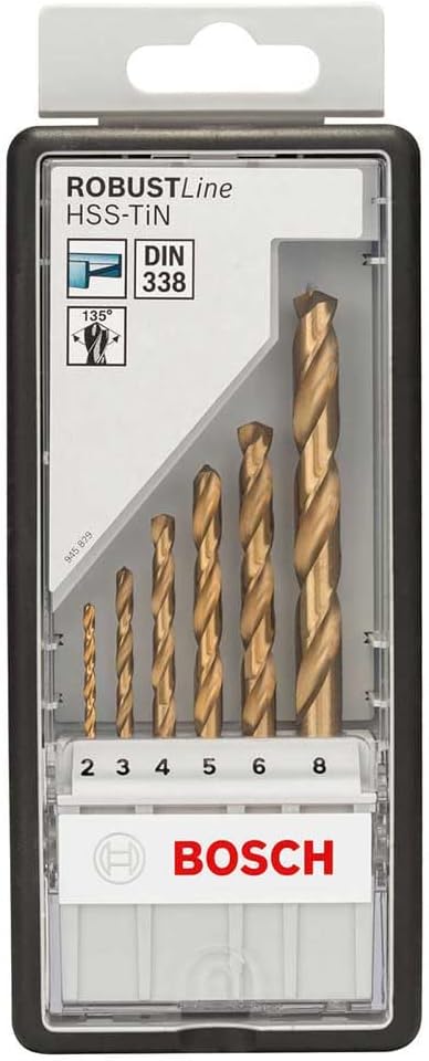 Bosch Professional 6tlg. Metallbohrer-Set HSS-TiN Robust Line Durchmesser: 2.0 - 8.0, Durchmesser: 2