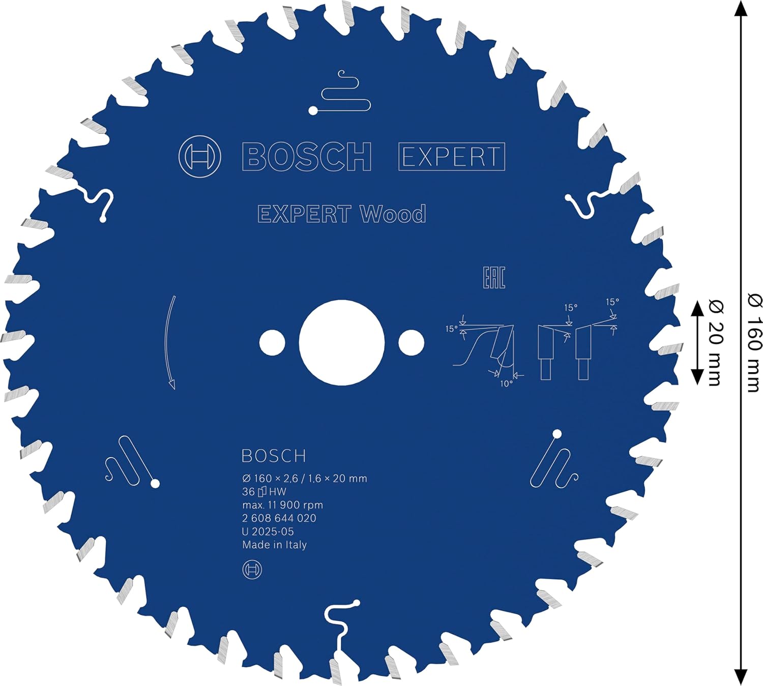Bosch Professional 1x Kreissägeblatt Expert for Wood (Holz, Sägeblatt Ø 160 x 20 x 2,6 mm, 36 Zähne,