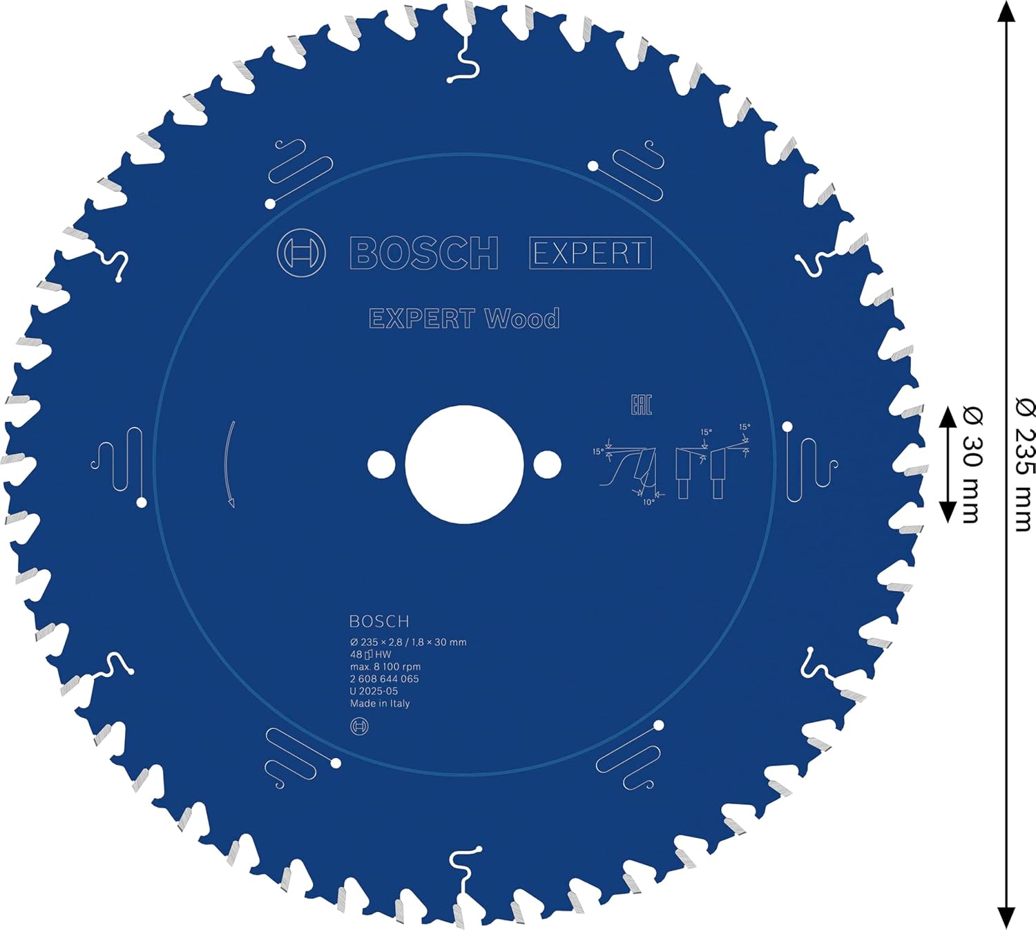 Bosch Professional 1x Kreissägeblatt Expert for Wood (Holz, Sägeblatt Ø 235 x 30 x 2,8 mm, 48 Zähne,