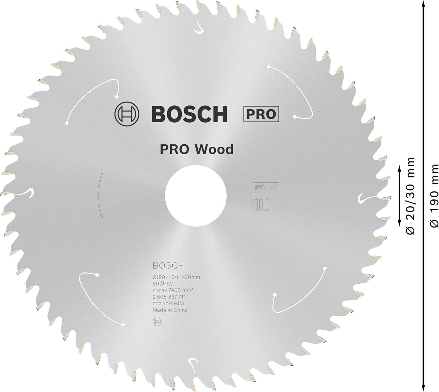 Bosch Accessories 1x Kreissägeblatt Standard for Wood (Holz, Sägeblatt Ø 190 x 30 x 1,6 mm, 60 Zähne