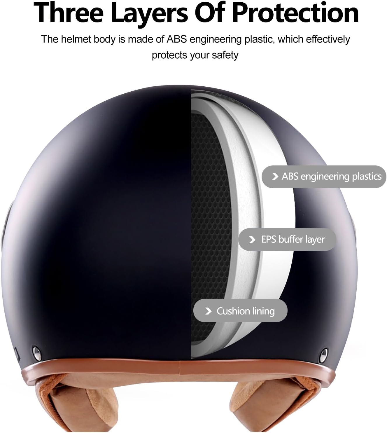 - Modedesign: Exquisites und stilvolles Aussehen, Herren- und Damen-Motorradhalbhelme sind ideale Motorradhelme für diejenigen, die durch ein kompaktes, leichtes und funktionsreiches Design einen bequemeren und stilvolleren Helm suchen möchten.