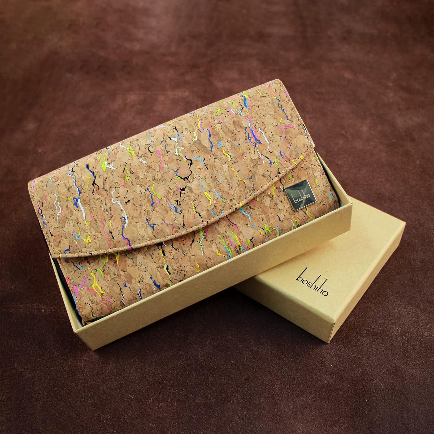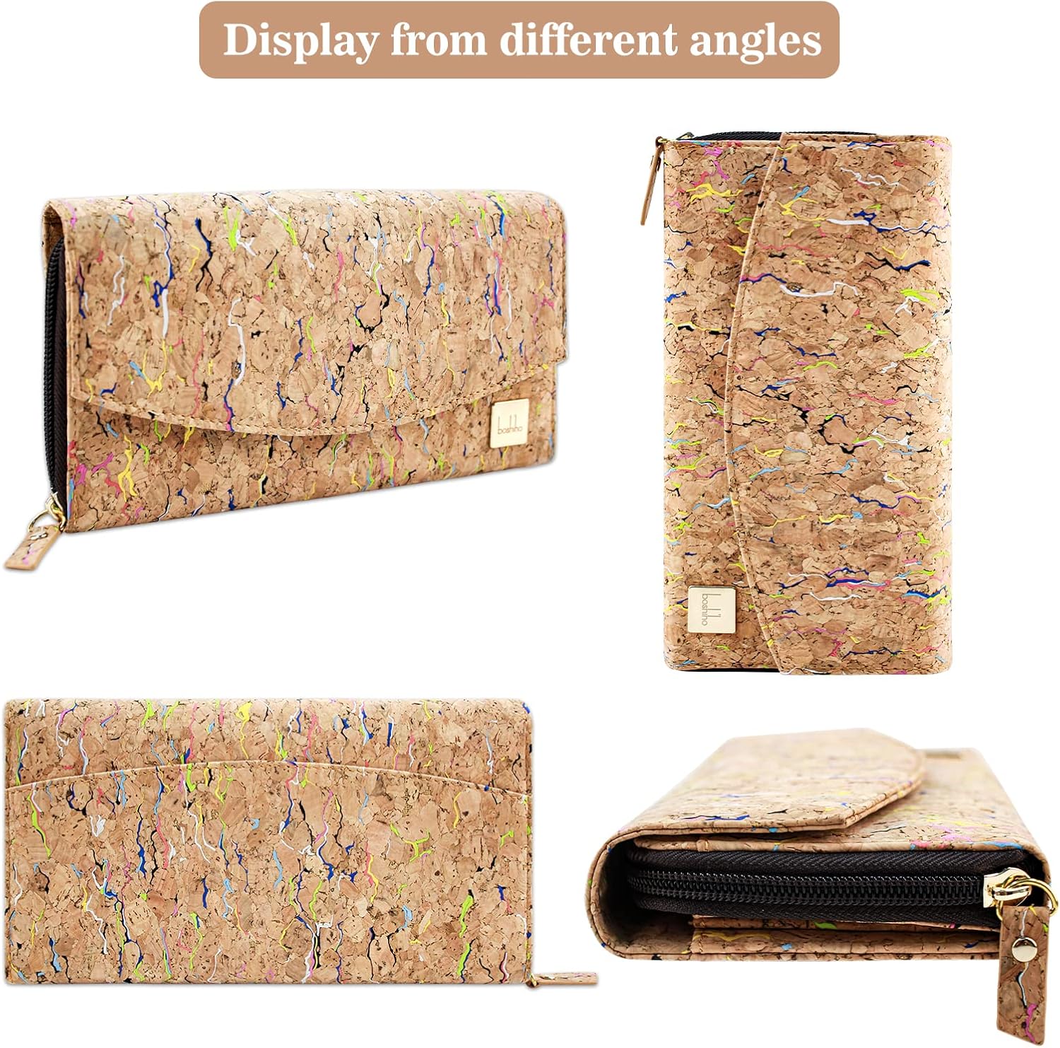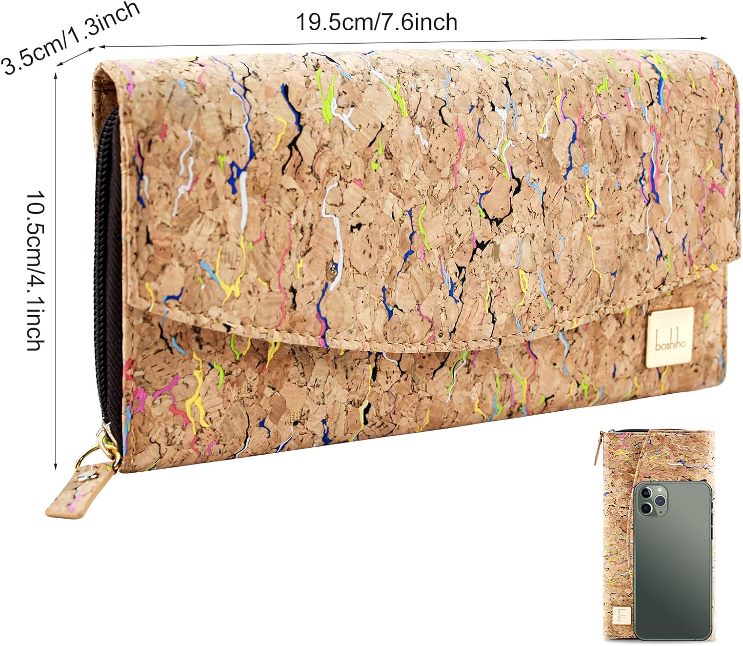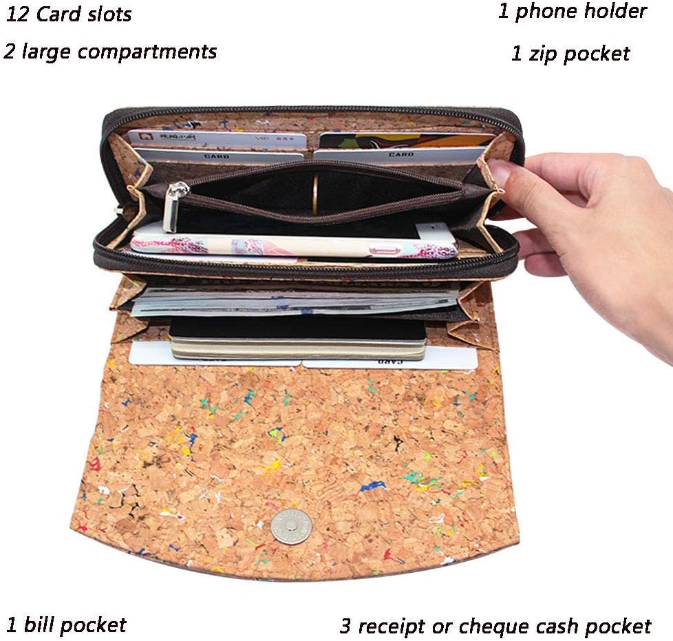 - ☑Brieftasche aus Kork mit Mehreren Fächern: Diese vegane Damen-Clutch mit grossem Fassungsvermögen hat 12 Kartenfächer, 4 Fächer für Bargeld und Smartphone, 3 Taschen zum Aufbewahren von Geldscheinen oder Quittungen, eine Innentasche mit