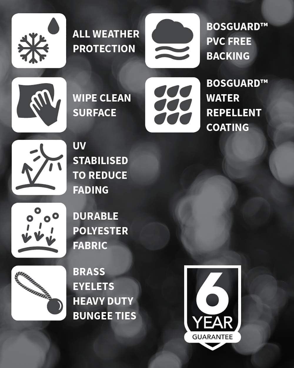 - Diese Abdeckung bietet Schutz bei jedem Wetter. Hochwertiger Schutz – mit Messingösen, robusten Bändern und Kordelschlössern