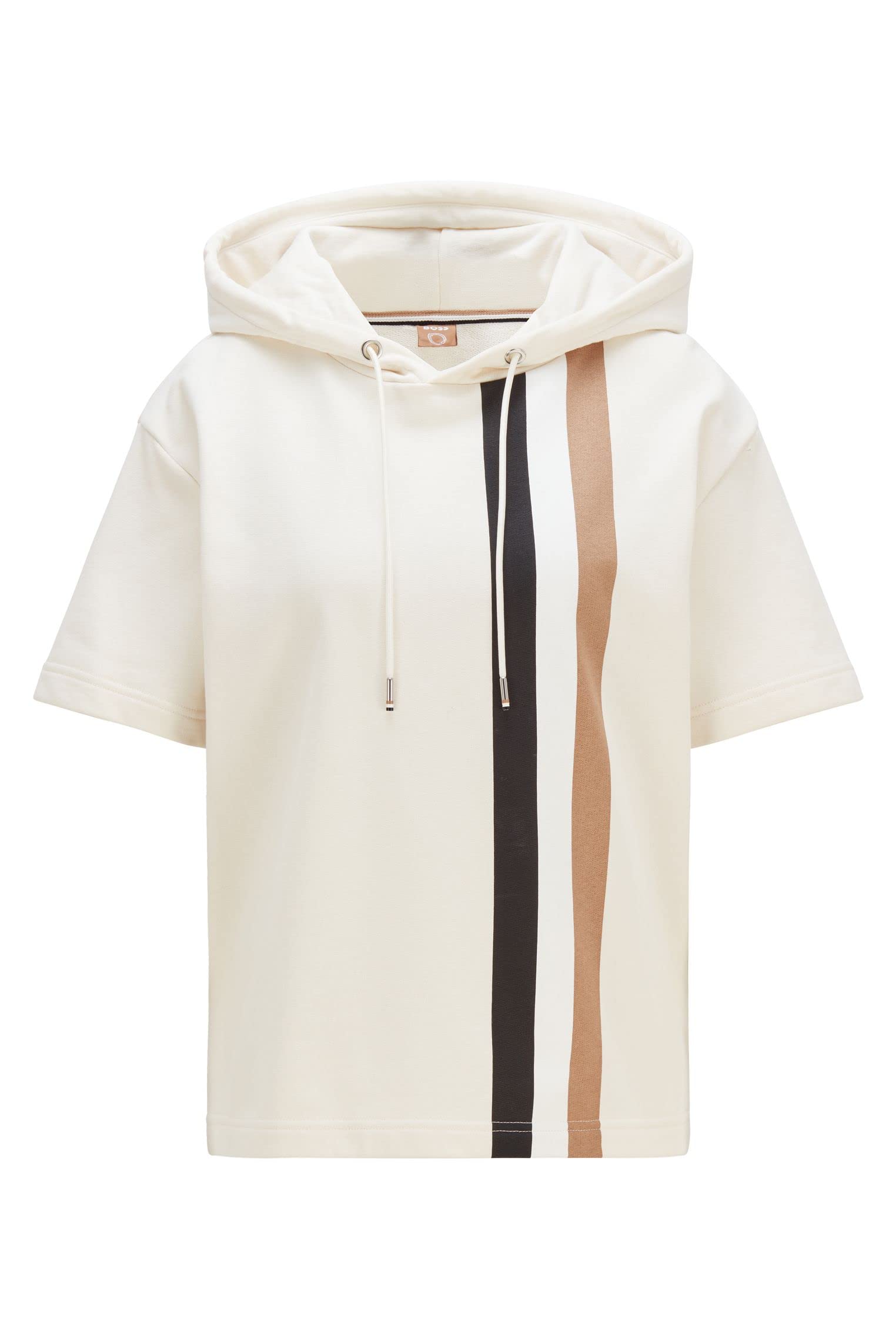 PRODUKTBESCHREIBUNGEN Hoodie mit kurzen Ärmeln und Streifen-Print. Relaxed Fit. Mit Kapuze. Kurze Ärmel. Standardlänge. Modelgrösse: Grösse S, Höhe 177, Taille 60, Brustumfang 84, Hüfte 89