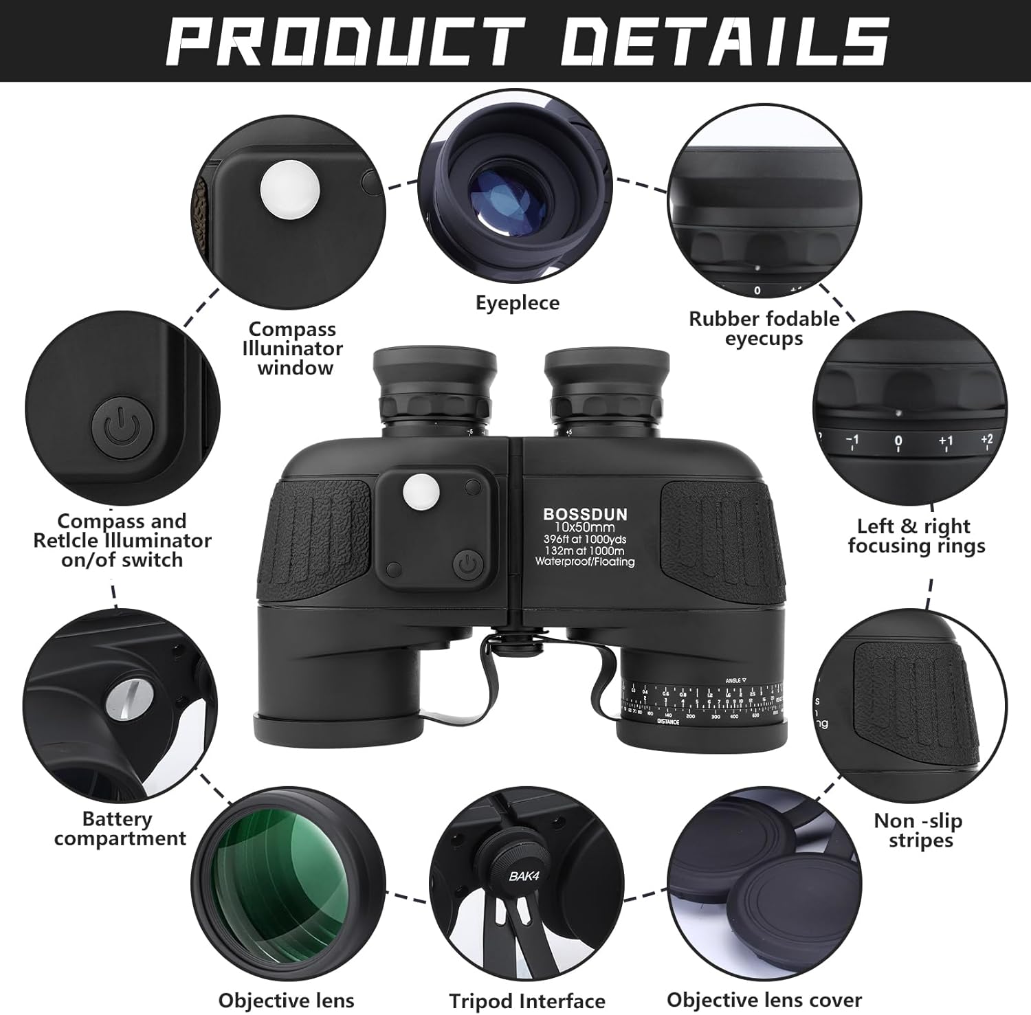 - ★ 【Hochwertige Optik】 ★--HD-Design, 10-fache Vergrösserung; 50-mm-Objektiv, 396 Fuss, 1000 Meter Sichtfeld, hochwertiges Bak-4-Prisma, FMC-mehrfach beschichtete optische Linsen, mit denen Sie aufgrund der hohen Durchdringung des Objektivs und