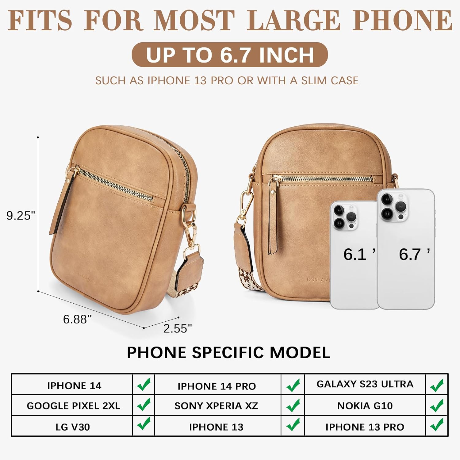 - 【Klein aber Geräumige】Produktmass : 18 cm (L) x 5 cm (B) x 21 cm (H). Viel Platz in der kleiner BOSTANTEN handy umhängetasche, es passen dort mehrere Sachen rein, alles was die Frau in dem Täschchen benötigt, Handy, Reisepass, Kosmetik,