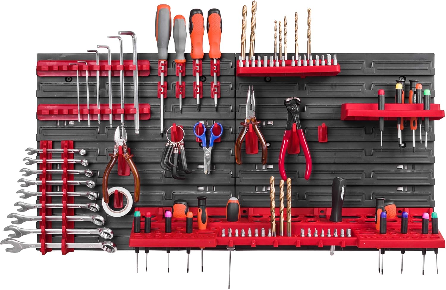 - Werkzeughalter : 1 x Schraubenschlüsselablage, 2 x Klemmleisten, 4 x Werkzeughaken M Klein, 4 x Werkzeughaken XXL Gross, 8 x Werkzeugklemme 1 x Bohrer - und Bithalterung Kunststoff rot Grösse: 190 x 111 x 32 mm 1x Schraubenzieherrhalterung Kunststoff