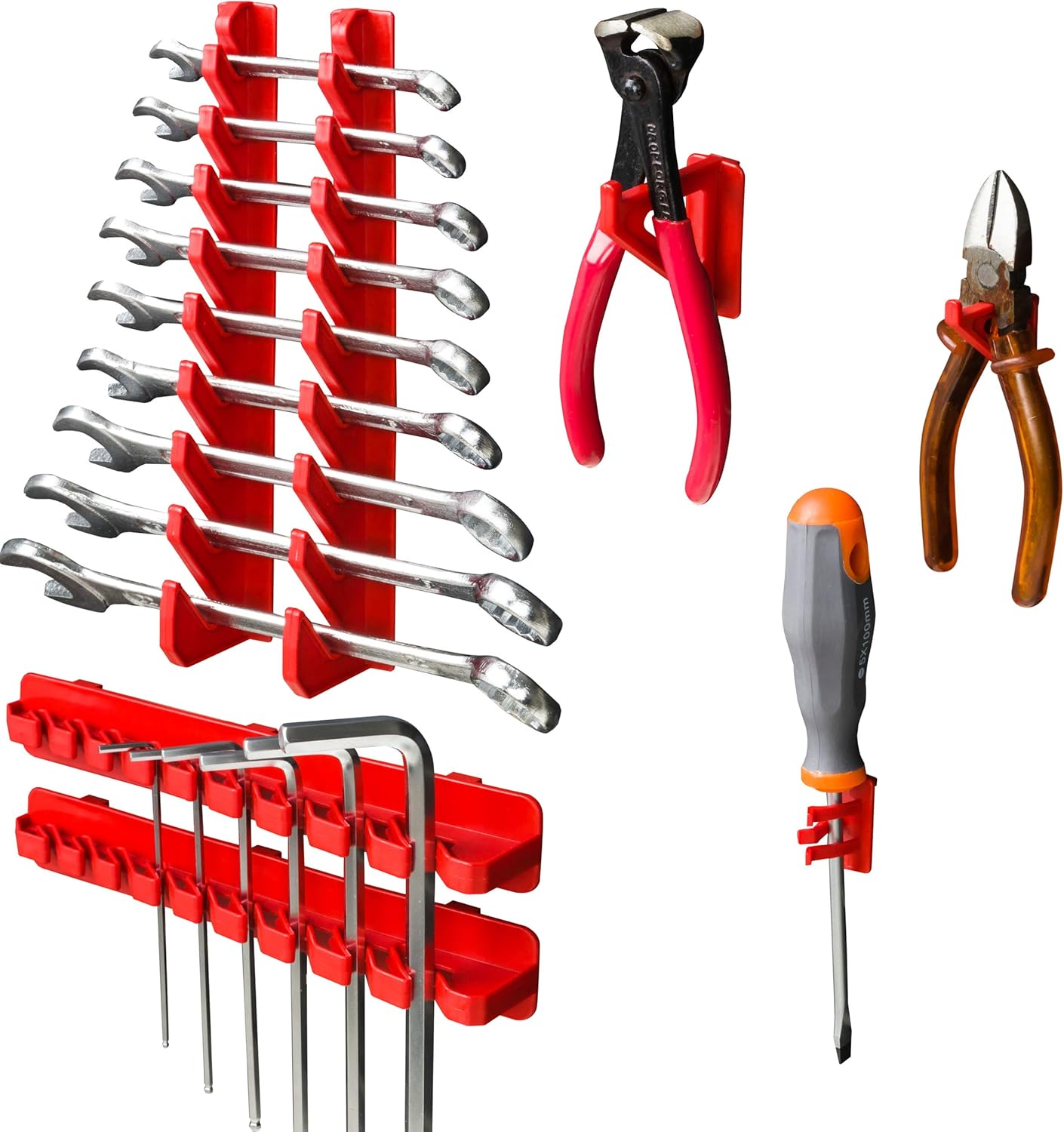 - Eine Vielzahl von Werkzeugträgern erlaubt es nahezu jede Art von Handwerkzeug zu befestigen.Grösse und Gewicht der jeweiligen Halterung angepasst sein. Probieren Sie einfach Ihre individuelle Nutzung aus. Die Befestigung an der Wandplatte erfolgt mit