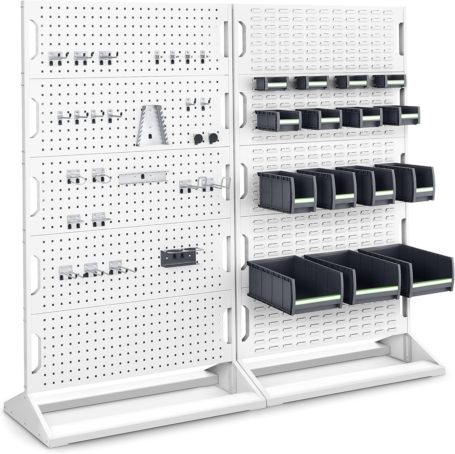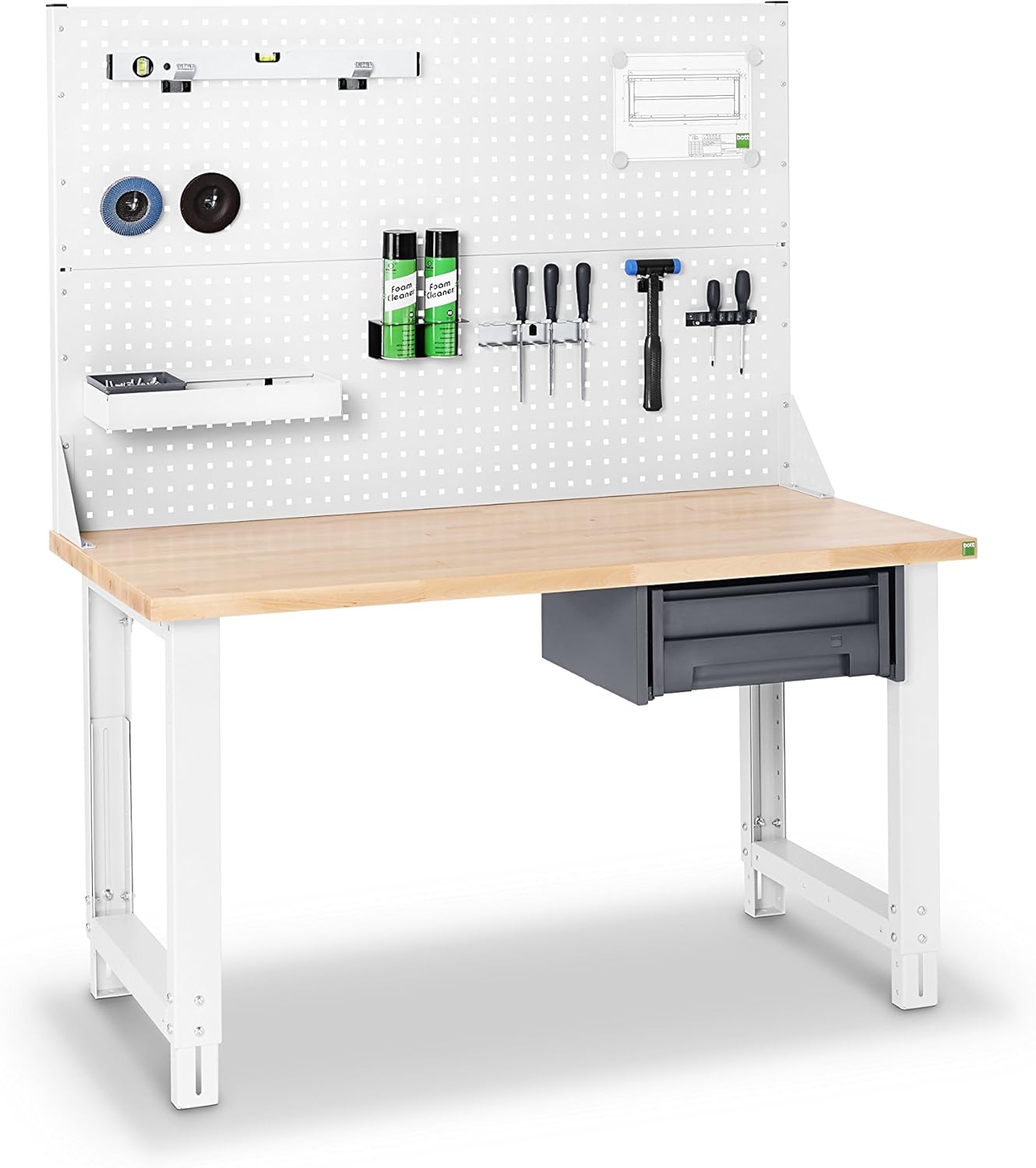 - hochwertige und robuste Lochplatte aus pulverbeschichtetem Stahlblech zur Aufnahme von Haken, Haltern und weiterem Zubehör aus dem umfangreichen perfo Lieferprogramm von bott