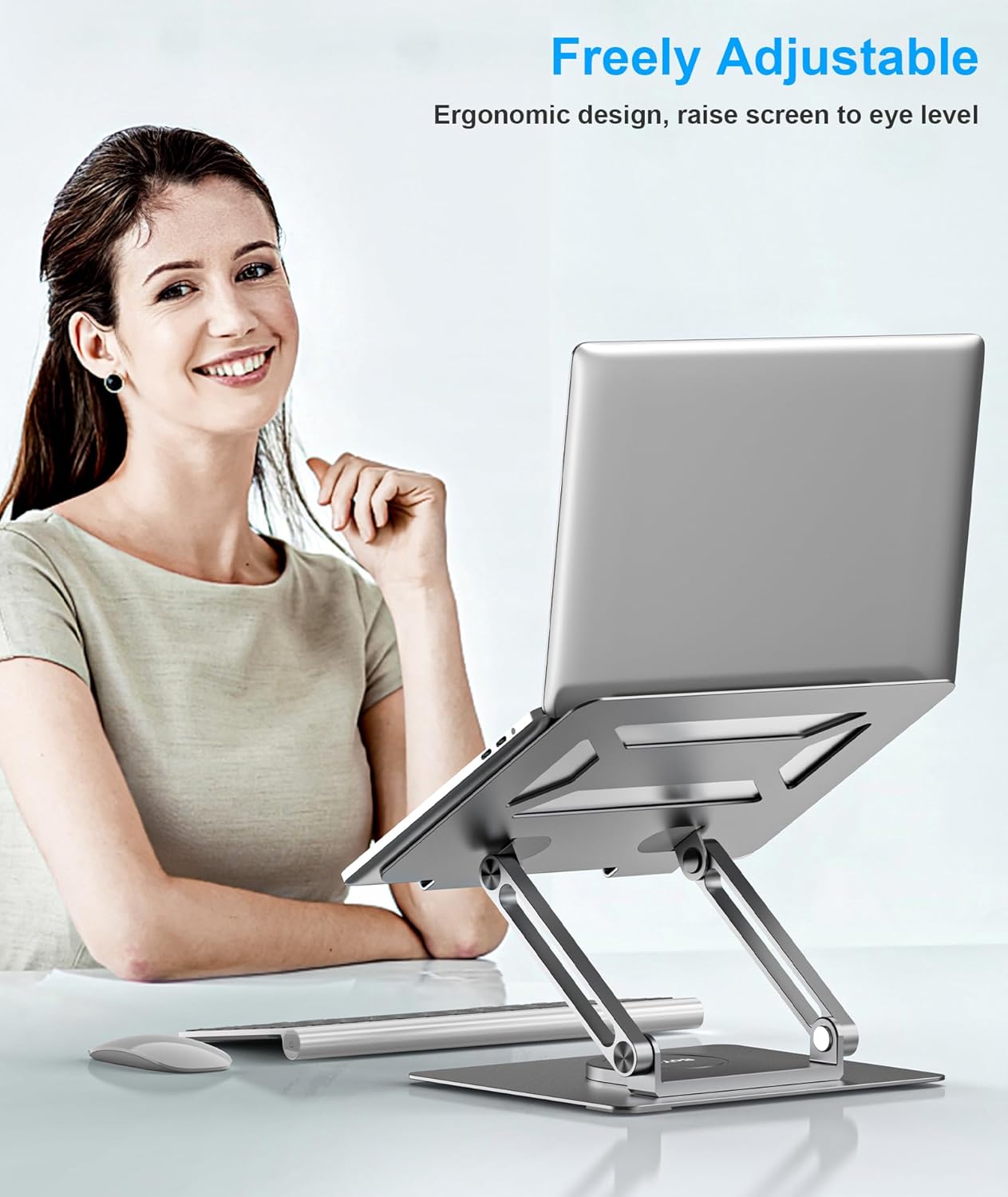- 【Stabiler und weniger Wackeln】 Der verstellbare Laptop-Riser aus hochwertigem Metallmaterial ist schwerer als andere normale Ständer aus leichter Aluminiumlegierung. Der Laptopständer für den Schreibtisch bietet eine stabilere Unterstützung mit