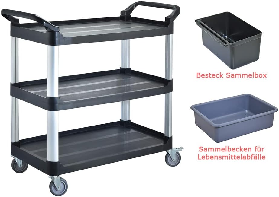 - 【SORTIERUNG BESTECK UND LEBENSMITTELABFÄLLEN】Der Küchenwagen ist mit 2 Becken ausgestattet, in denen Reste aufbewahrt werden können, 1 Messer-, Gabel- und Essstäbchen-Sammeleimer. Wenn Sie den Tisch im Restaurant reinigen, können Sie schnell