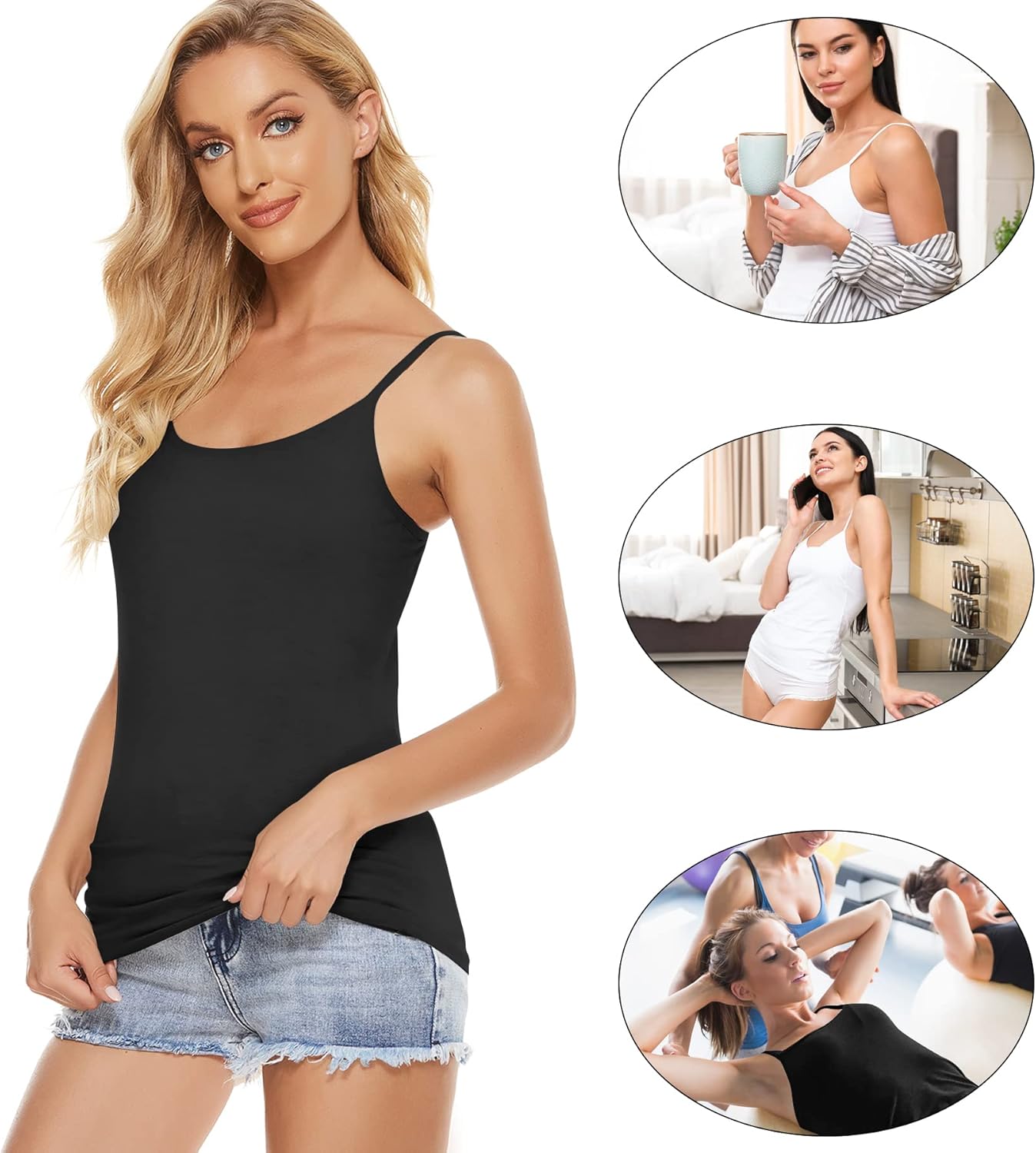 BQTQ 6 Stück Unterhemd Damen Spaghetti Top Unterhemd Spaghettiträger mit Verstellbarer Strap Basic C
