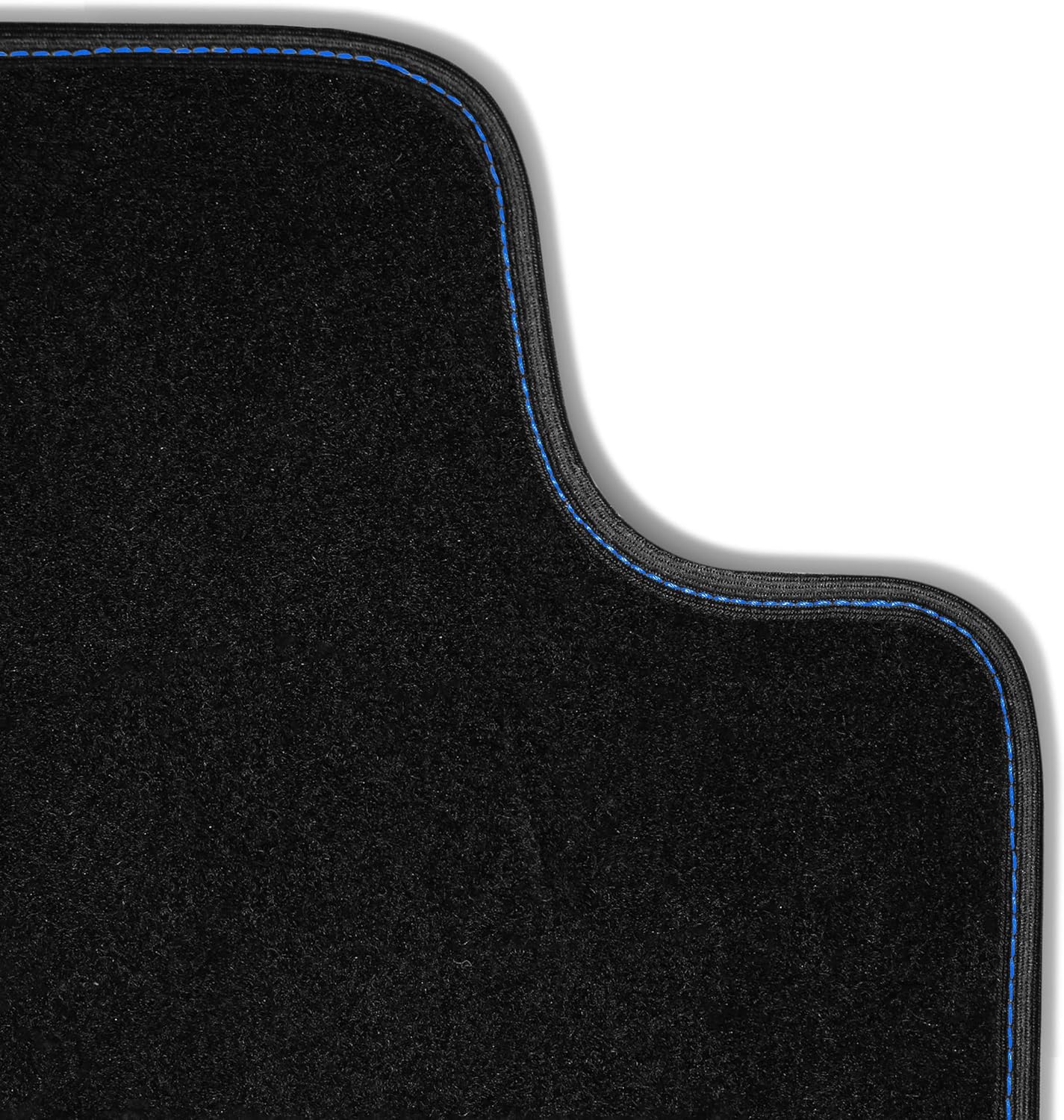- MATERIAL & DESIGN - Hochwertiger, pflegeleichter und robuster Tuft-Velours mit Bandeinfassung Schwarz und Ziernaht Blau. Zusätzlicher Stick auf Fahrermatte in den Farben Blau & Weiss (Schriftzug / Logo: EXCLUSIVE LINE)