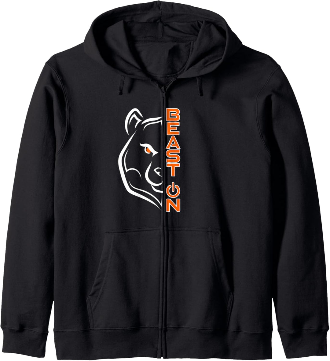 Bär Kopf Beast ON Orange Gym Fitness Workout Training Sport Kapuzenjacke