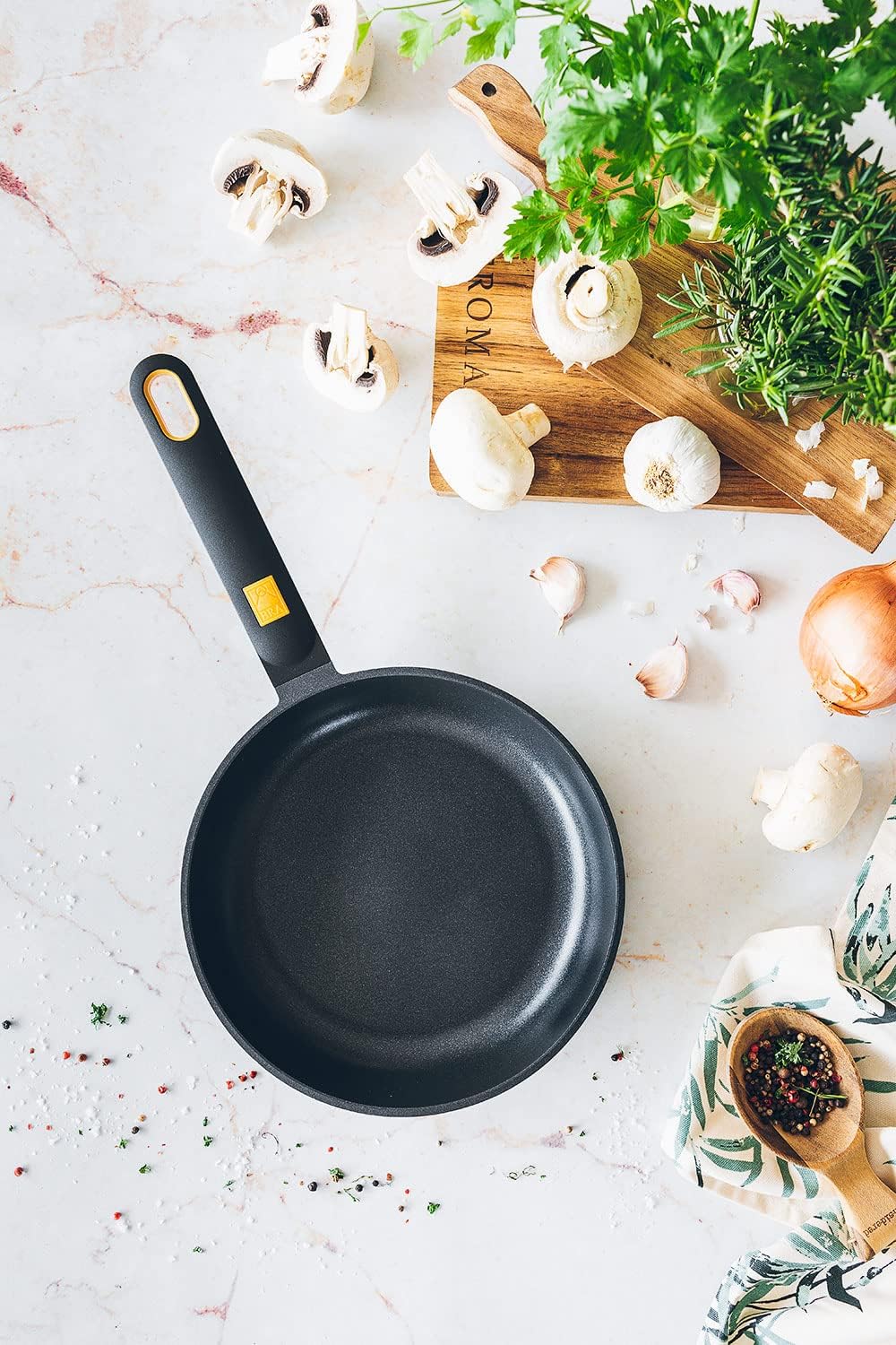 • Hergestellt aus geschmiedetem Aluminium mit 4,5 mm; optimale Qualität mit dreischichtiger Antihaftbeschichtung, PFOA-frei, in 3 Schichten mit einer Dicke von 30-40 Mikron aufgetragen und absolut umweltfreundlich