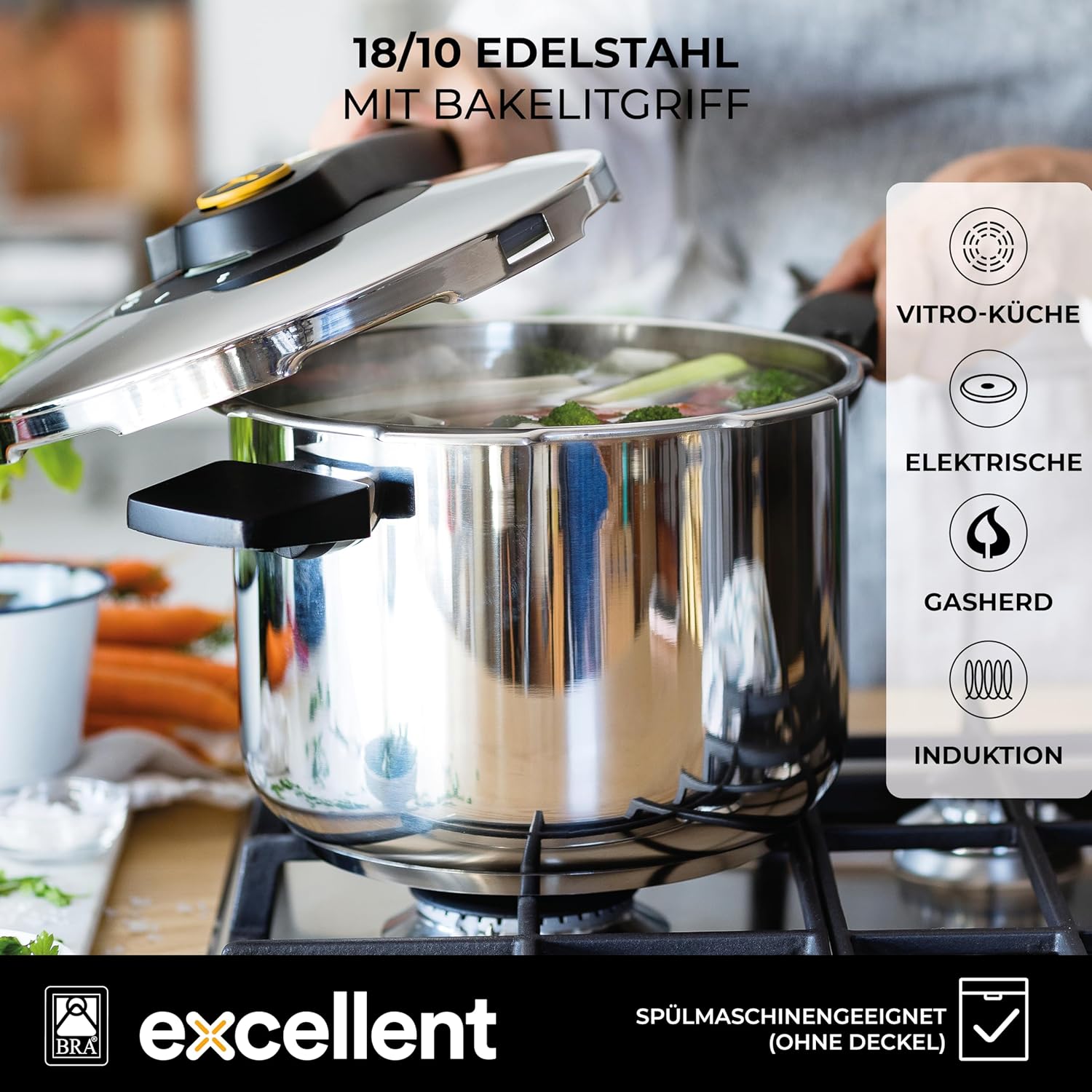 - VIELSEITIGKEIT IN DER KÜCHE: 1 Schnellkochtopf mit 4 Litern Fassungsvermögen (Induktionsbodendurchmesser: 18 cm), ideal zum Zubereiten einer Vielzahl von Gerichten, von Eintöpfen bis zu Desserts