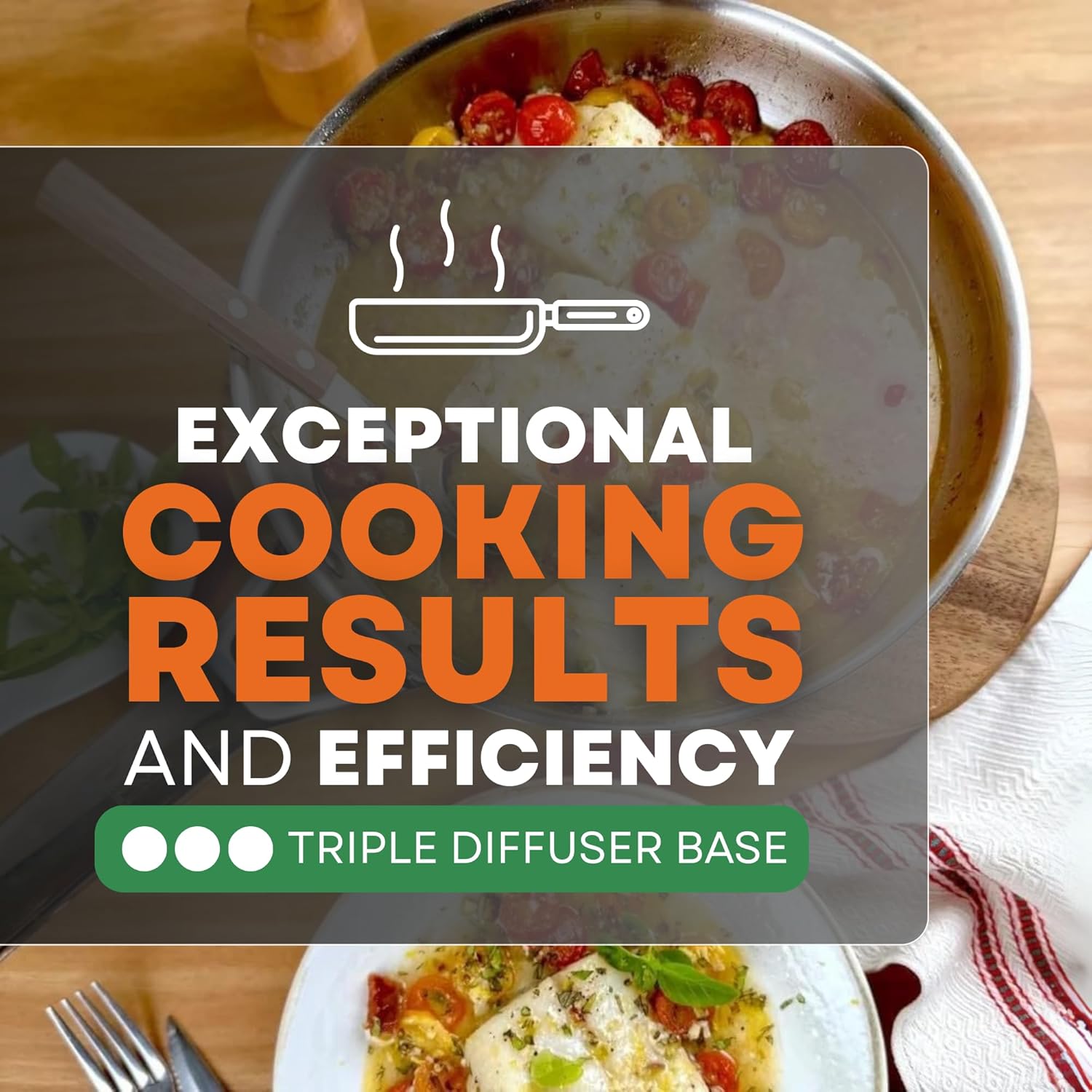 - Hergestellt aus Edelstahl 18/10 mit 3-fachem Diffusorboden für eine exzellente Verteilung der Temperatur.