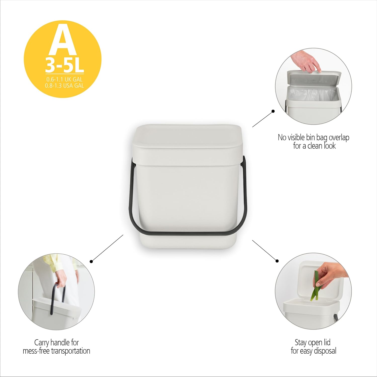 Brabantia Sort & Go Abfalleimer mit Deckel 3 L (hellgrün), platzsparender Biomüll Behälter mit Griff