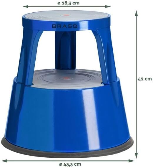 - Der Tritthocker von BRASQ ist aus hochwertigem Stahl hergestellt und wiegt trotzdem nur 4,8 kg. Durch die versenkbaren Rollen kann er bequem und kinderleicht verschoben werden. Wenn der Trittroller mit Gewicht belastet wird, versenken sich die Rollen