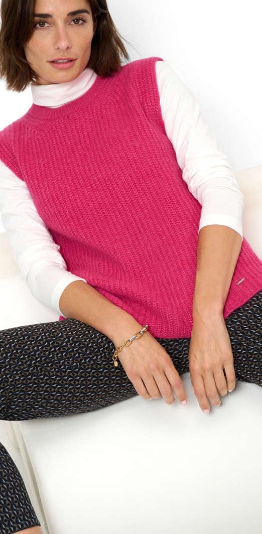 PRODUKTBESCHREIBUNGEN Zeigen Sie sich von Ihrer schicken Seite: Der Style Elisa in pflegeleichter Alpakamix-Qualität ist ein Pullunder für ein modebewusstes Outfit. Vor allem das Zusammenspiel von dem soften Wollmix und dem zeitgemässen Design bestimmen die wertige Optik dieses Pullunders für Damen. Die entspannte, lässige Silhouette des Damenpullunders wird abgerundet durch einen trendigen Rundhals und cleanen Saumabschlüssen. Vervollständigen den Look: die feine Rippenstruktur und die aktuellen Farbtöne. Selbstbewusst modisch sein und stilvoll Akzente setzen – das ist, was moderne Frauen wollen. Mehr