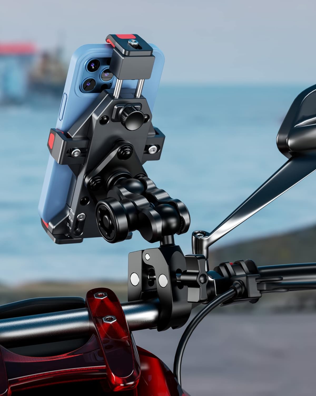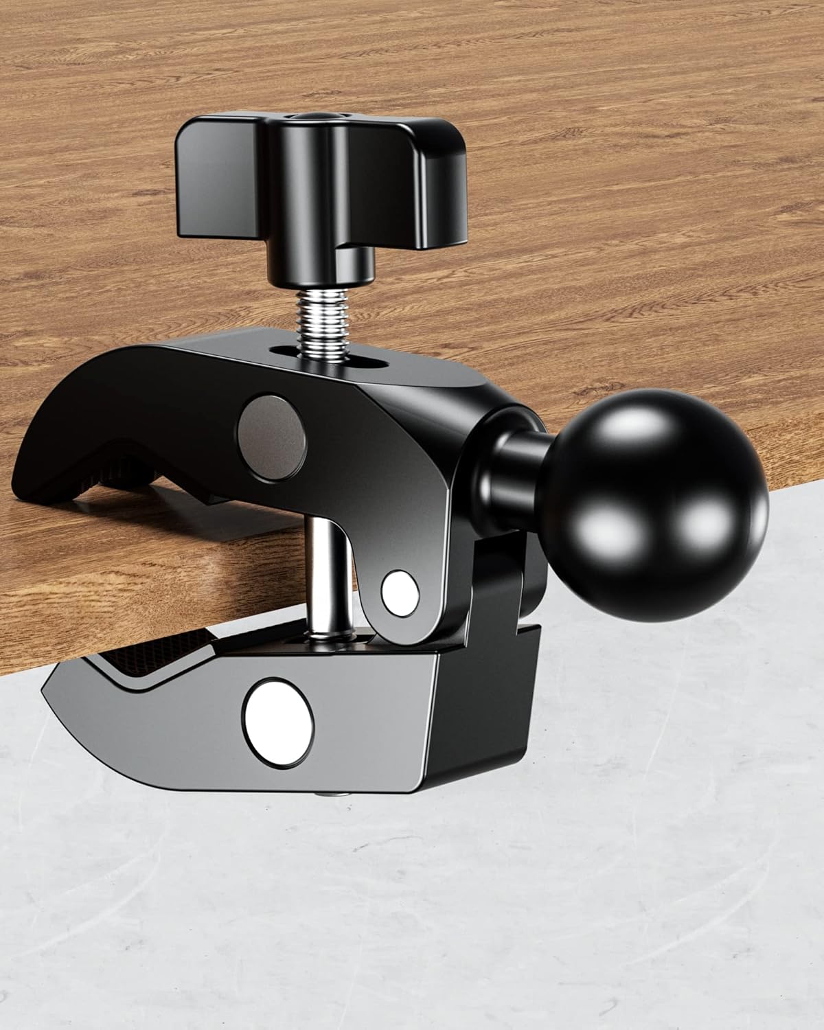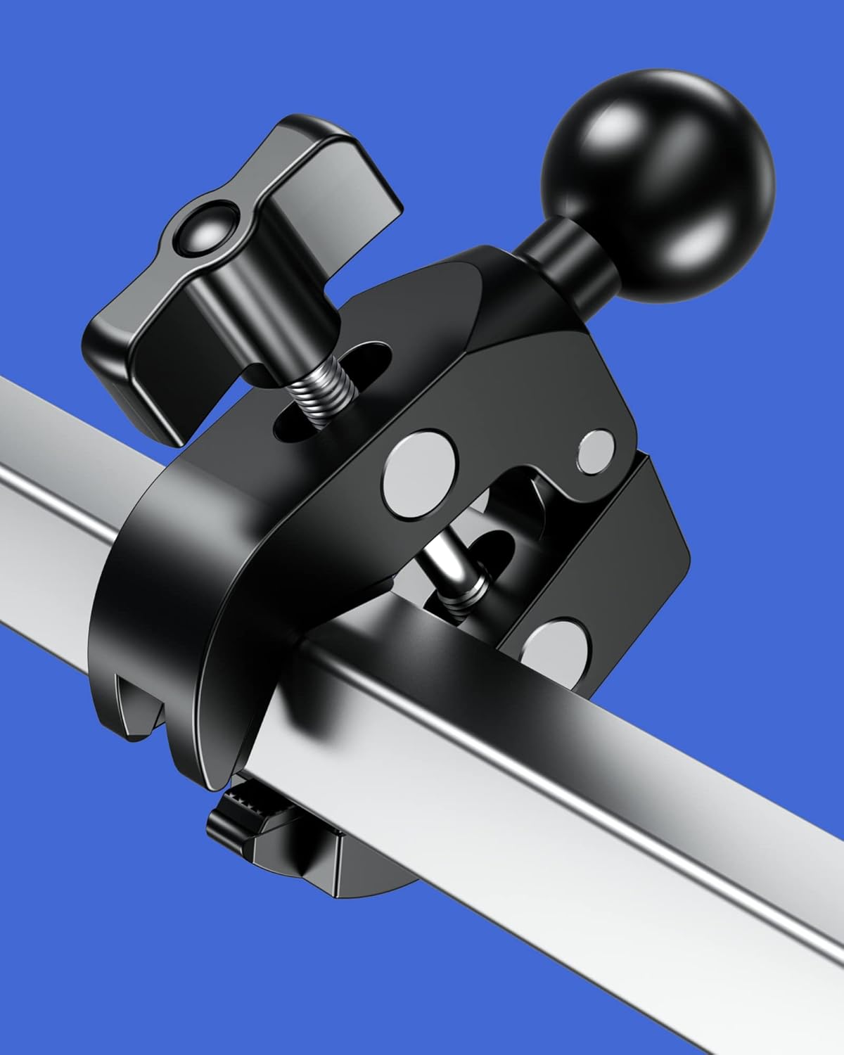 • Material: Hauptkörper aus 6061-T6-Aluminiumlegierung, Mittelschraube aus hochwertigem Edelstahl, Knopf aus Aluminiumlegierung. TPU-umspritzter Kugelkopf, rutschfest und verschleissfest. Robuste Klemmbacken aus Aluminiumlegierung sind mit TPU-Pads