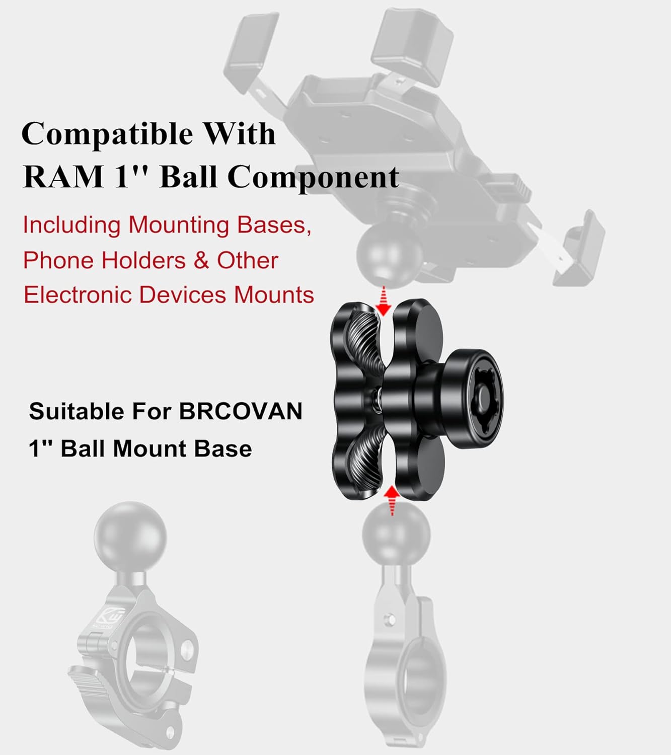 - ▶ Kompatibel mit RAM Mounts & BRCOVAN jeder B Grösse 1 Zoll Kugel Komponente. Geeignet für Fahrrad- und Motorrad-Handyhalterung mit 1 Zoll Kugel Adapter.