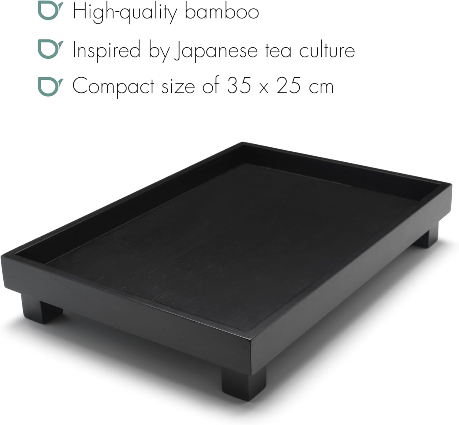 • Das schwarze Holztablett mit Standfüssen ermöglicht Ihnen einen sicheren Stand auf Ihrem Tisch