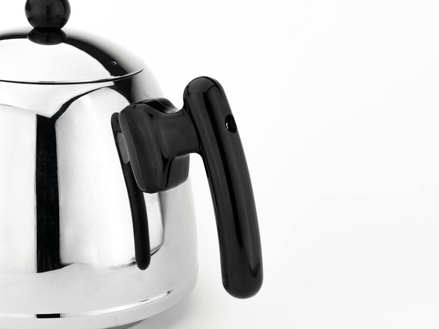 • Der schwarze Kunststoffgriff & Knopf der glockenförmigen Edelstahlkanne werden einzig handwarm