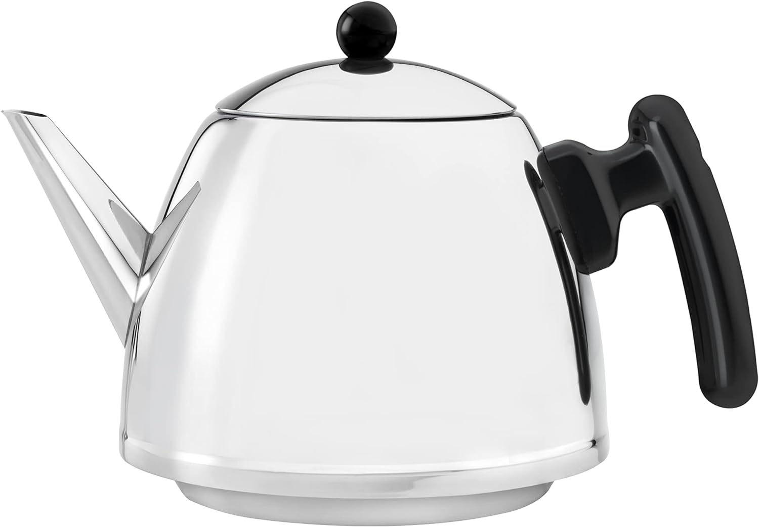 Bredemeijer kleine doppelwandige Edelstahl Teekanne 1.2 Liter mit schwarzem Griff