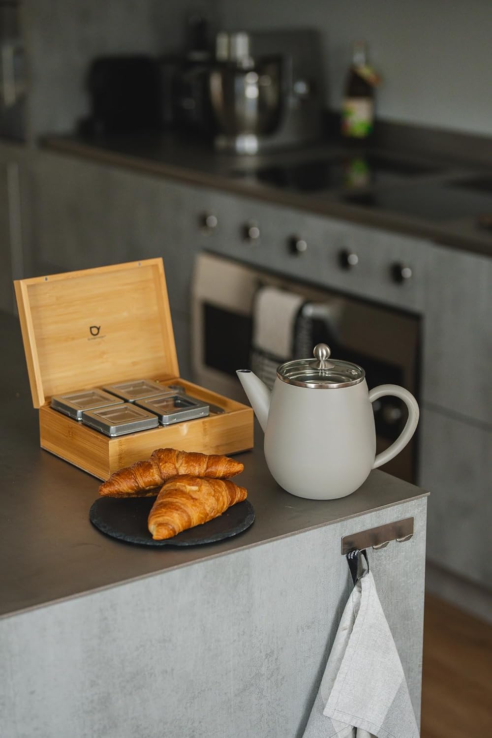 - In der 18 cm breiten Teebeutel-Box aus Holz bewahren Sie Ihre verschiedenen Teesorten luftdicht auf