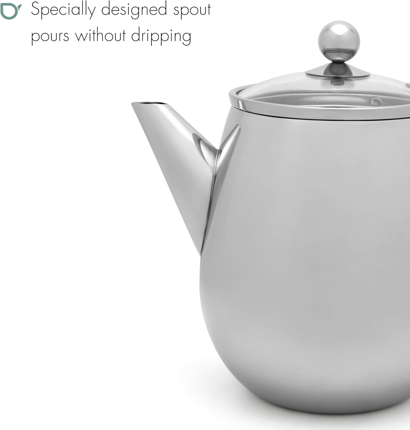 Bredemeijer Edelstahl Teekanne Duet Eva (1.1 Liter) – mit Teesieb & Edelstahlfilter in Einem, hitzeb