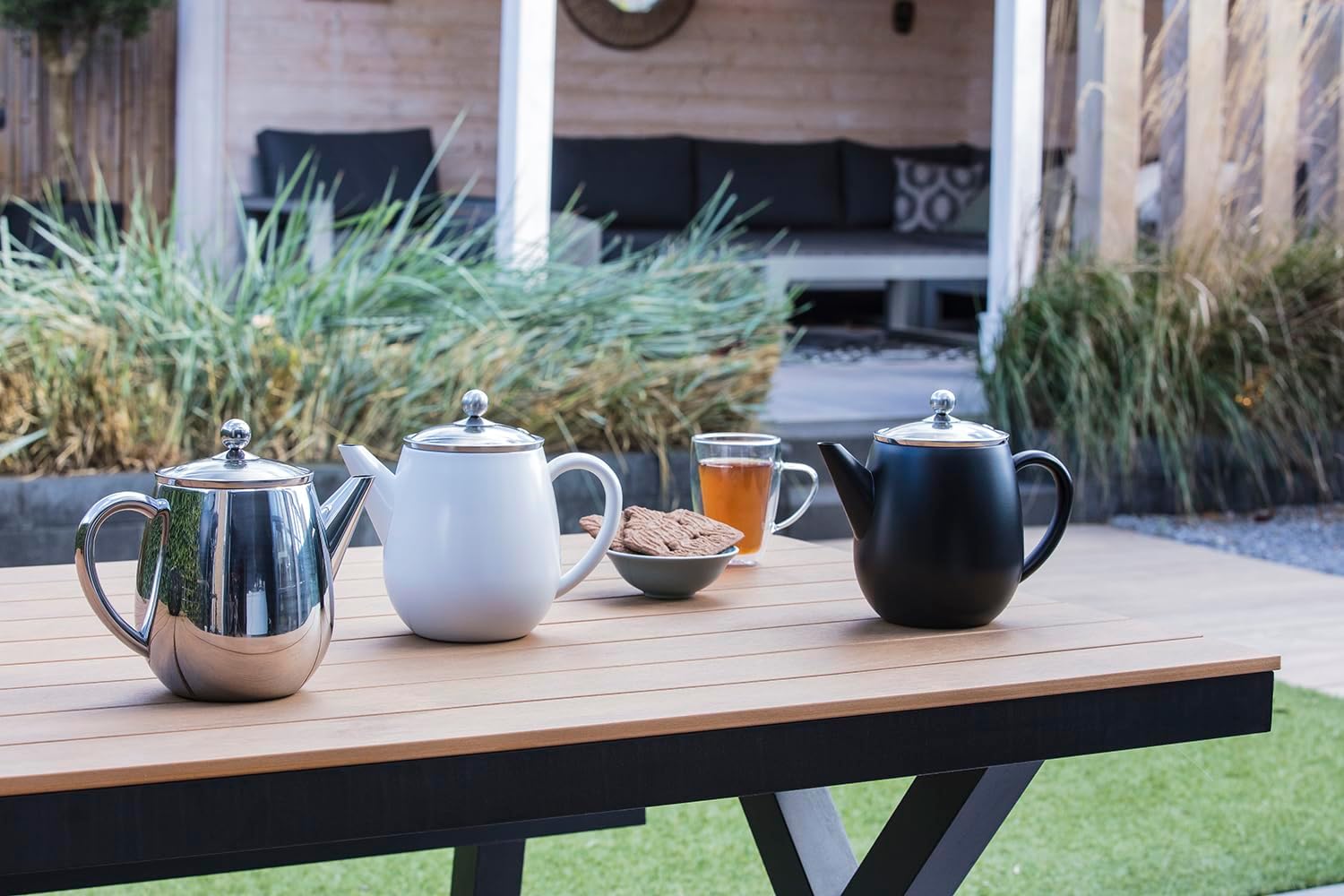 • Die isolierende Innenkonstruktion der glänzenden Teekanne hält den Tee warm & aromatisch