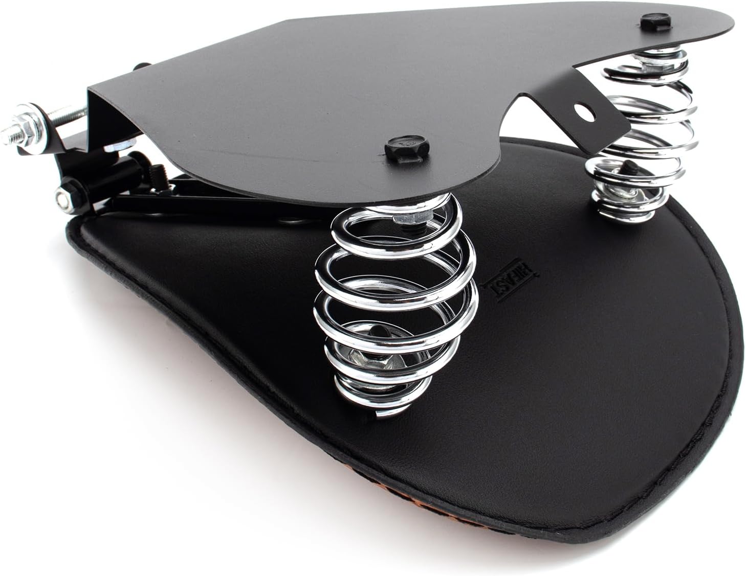 - 【Solo-Sitzkissen für Motorräder】 Universelles Solositzkissen für Motorräder mit Federn und Halterung. Material: PU-Leder + Hochleistungsstahl, Sitzfarbe: Schwarz;