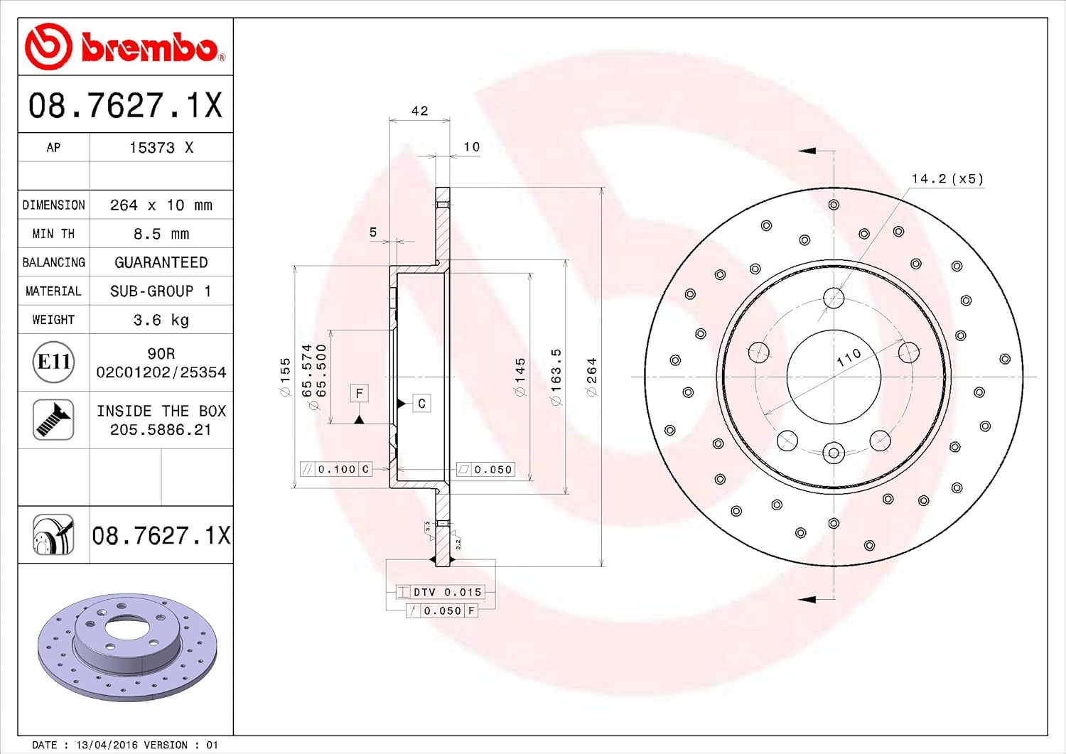 BREMBO 08.7627.1X Bremsscheibe Scheibenbremsen, Bremsscheiben (x2)