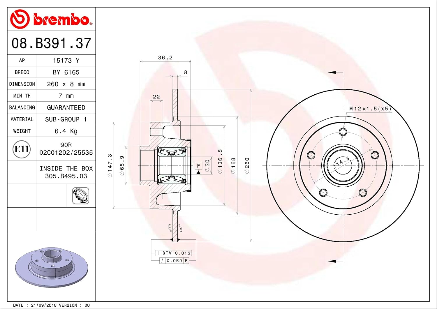 • TECHNISCHE INFO: BREMSSCHEIBE Hinten Aussen Ø [mm]: 260