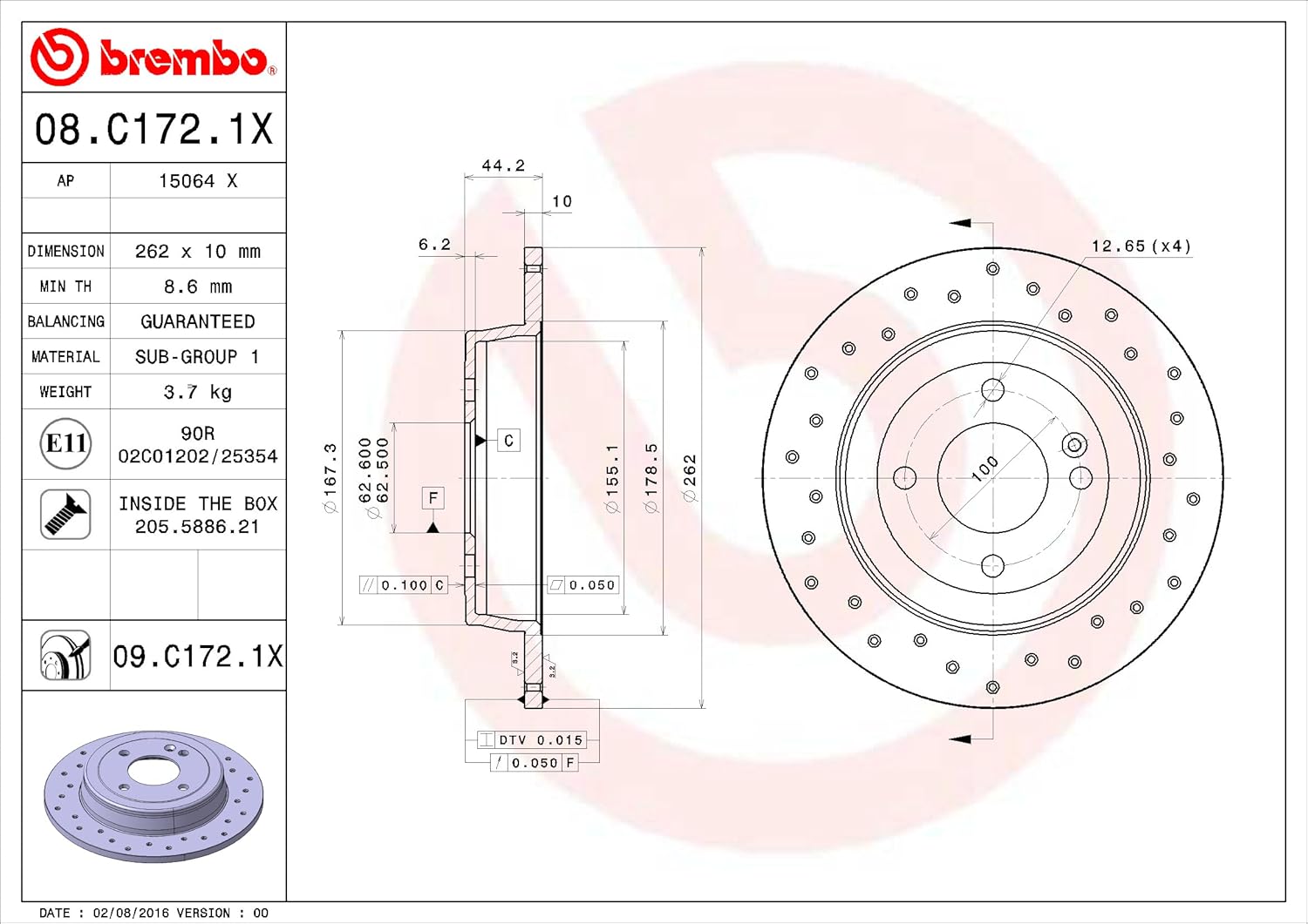 Brembo Xtra 08.C172.1X Bremsscheibe gelocht, hinten, 2 Stück