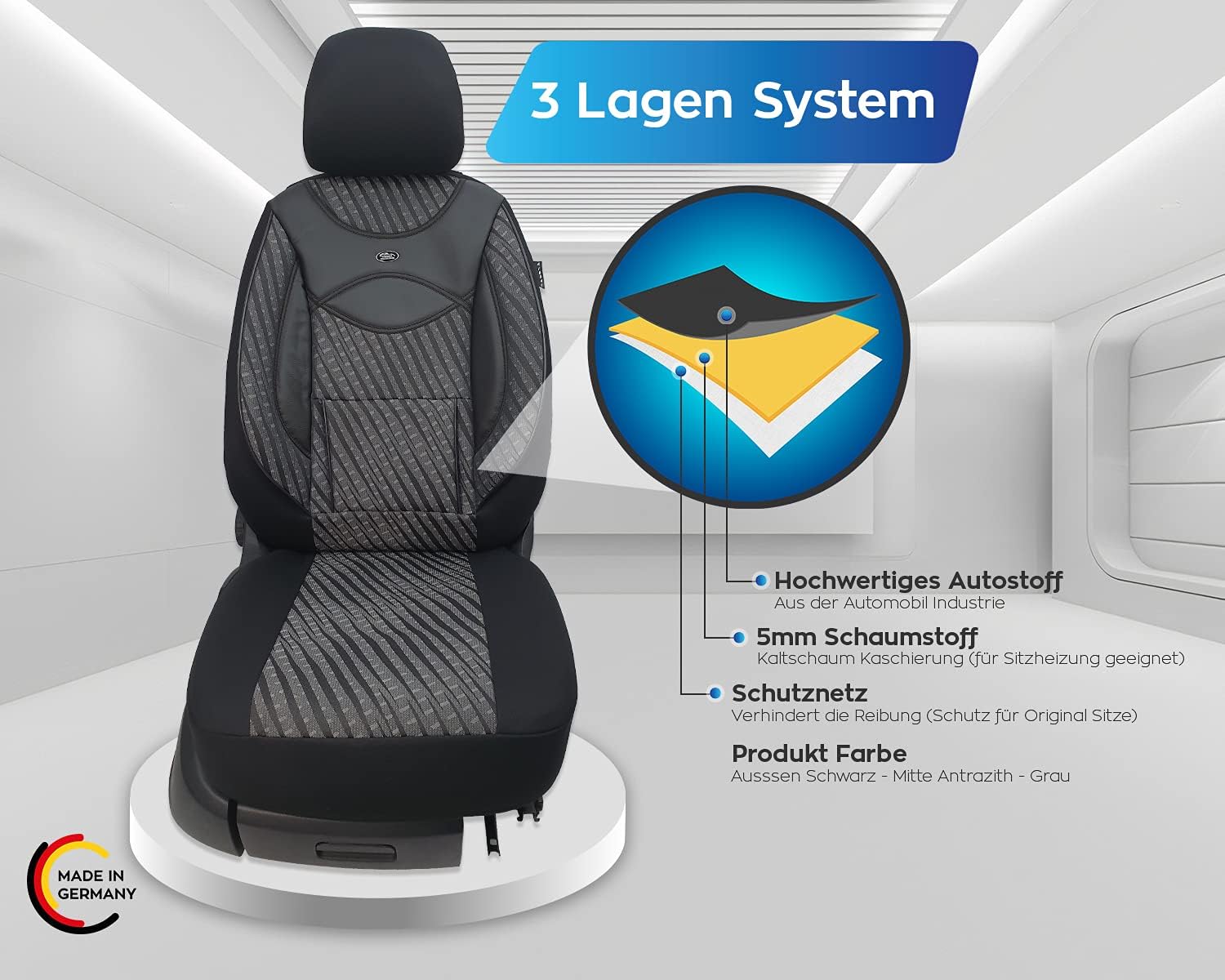 - Für Sitzheizungen geeignet und mit speziellem Airbag-Naht vernäht: Geniessen Sie Komfort in jeder Jahreszeit mit Bezügen, die für Sitzheizungen optimiert sind