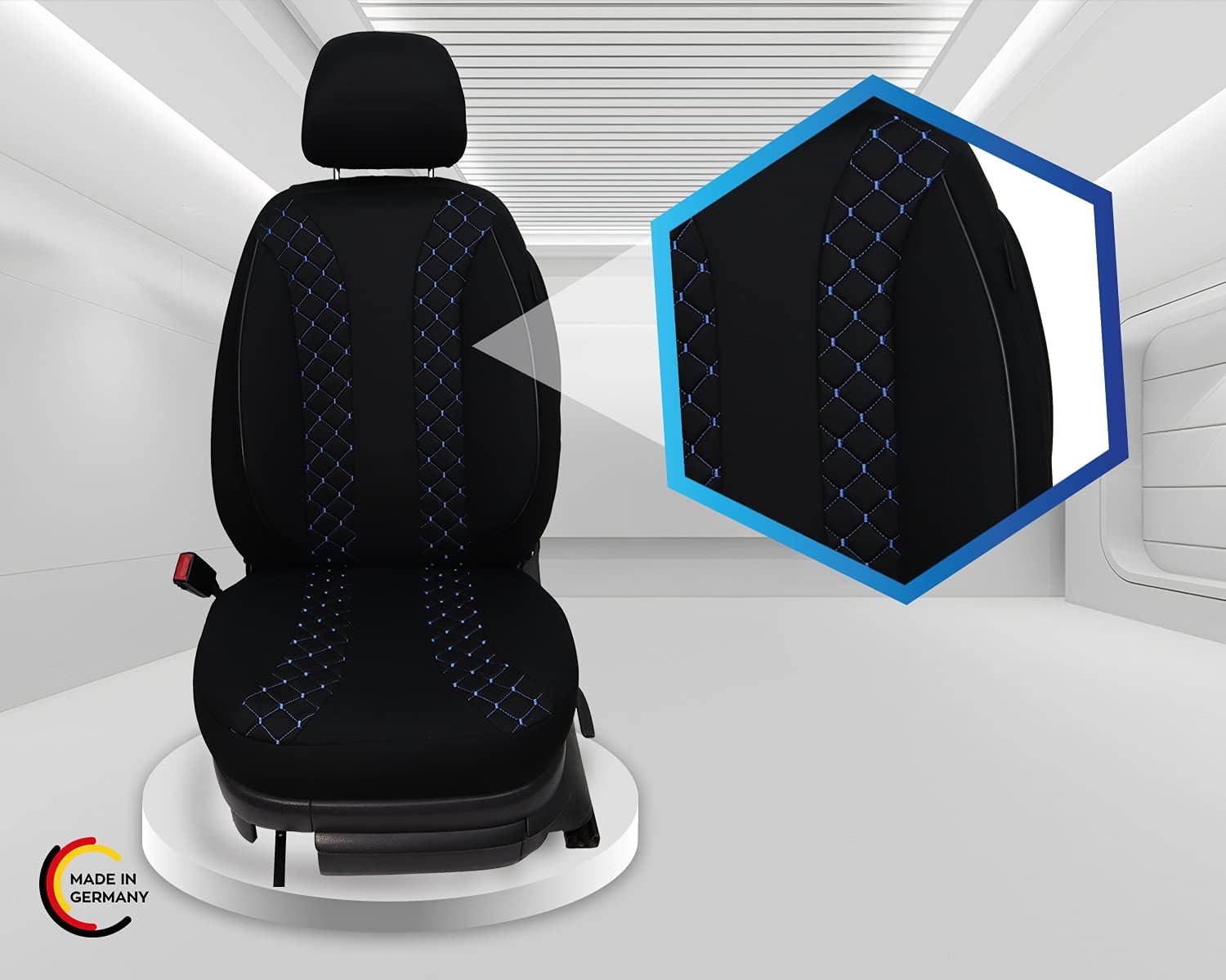 - Merkmale - Mass Anfertigung für Fahrer und Beifahrer, Passend auch für Aktivkopfstützen (nicht abnehmbare Kopfstützen), Fertigung Made in Germany