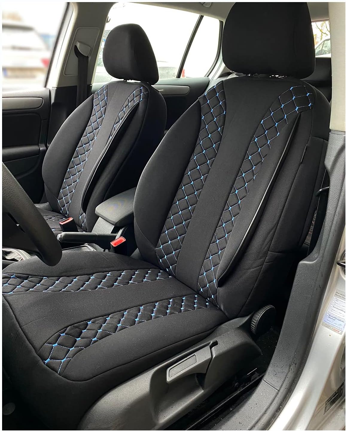 - Lieferumfang - 2x Sitzfläche, 1x Rückenlehne für Fahrer, 1x Rückenlehne für Beifahrer, 2x Kopfstützenbezüge, Klammer/Haken, Montageanleitung