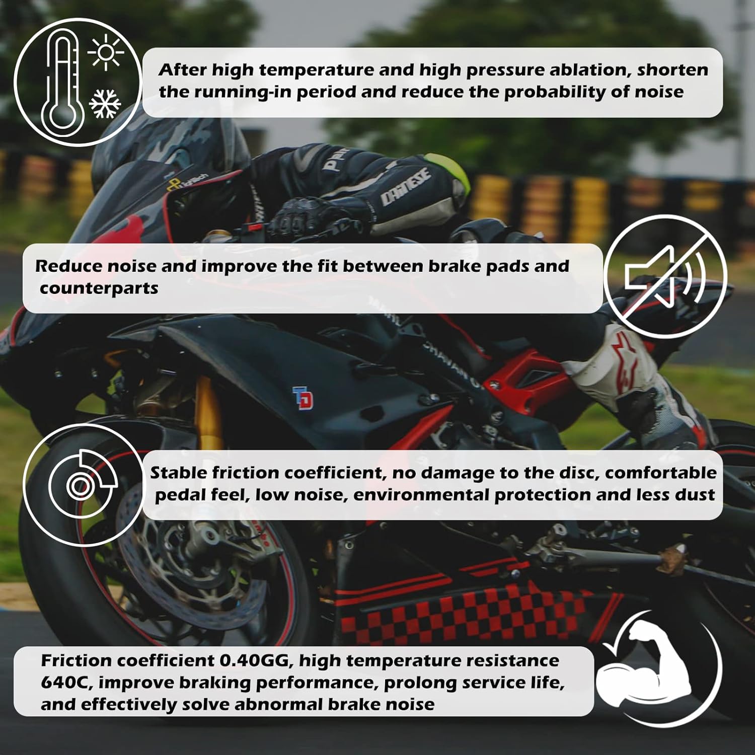 - 【Material】 Hergestellt aus Keramikverbindungen und Kupferfasern, passend zum Pad des Originalgeräteherstellers, verstärkt die Reibung des Pads für verbesserte thermische Stabilität und Haltbarkeit. Geringere Wärmeerzeugung und -übertragung.