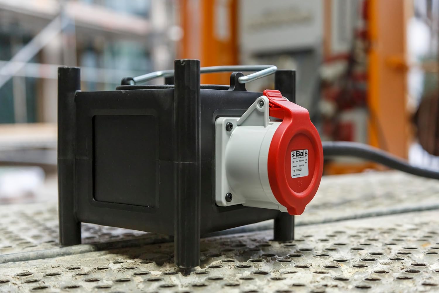 - Gummi-Bauverteiler mit Qualitätssteckdosen nach VDE 0620-1 ist beständig gegen diverse Öle, Fette, Benzin und Säuren, UV- und Ozonstrahlung