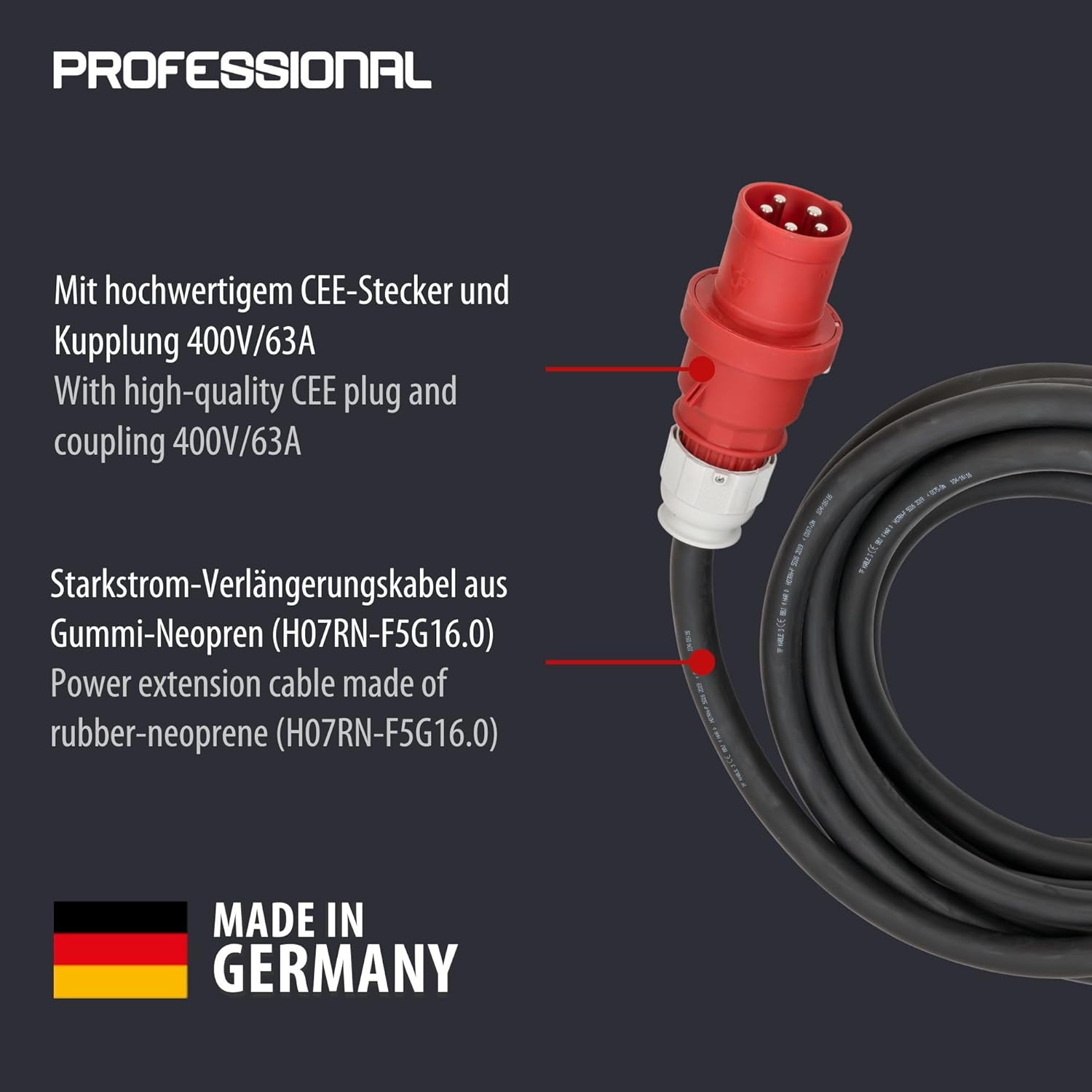 - Hochwertiges CEE Starkstromkabel mit Qualitätssteckern - Made in Germany