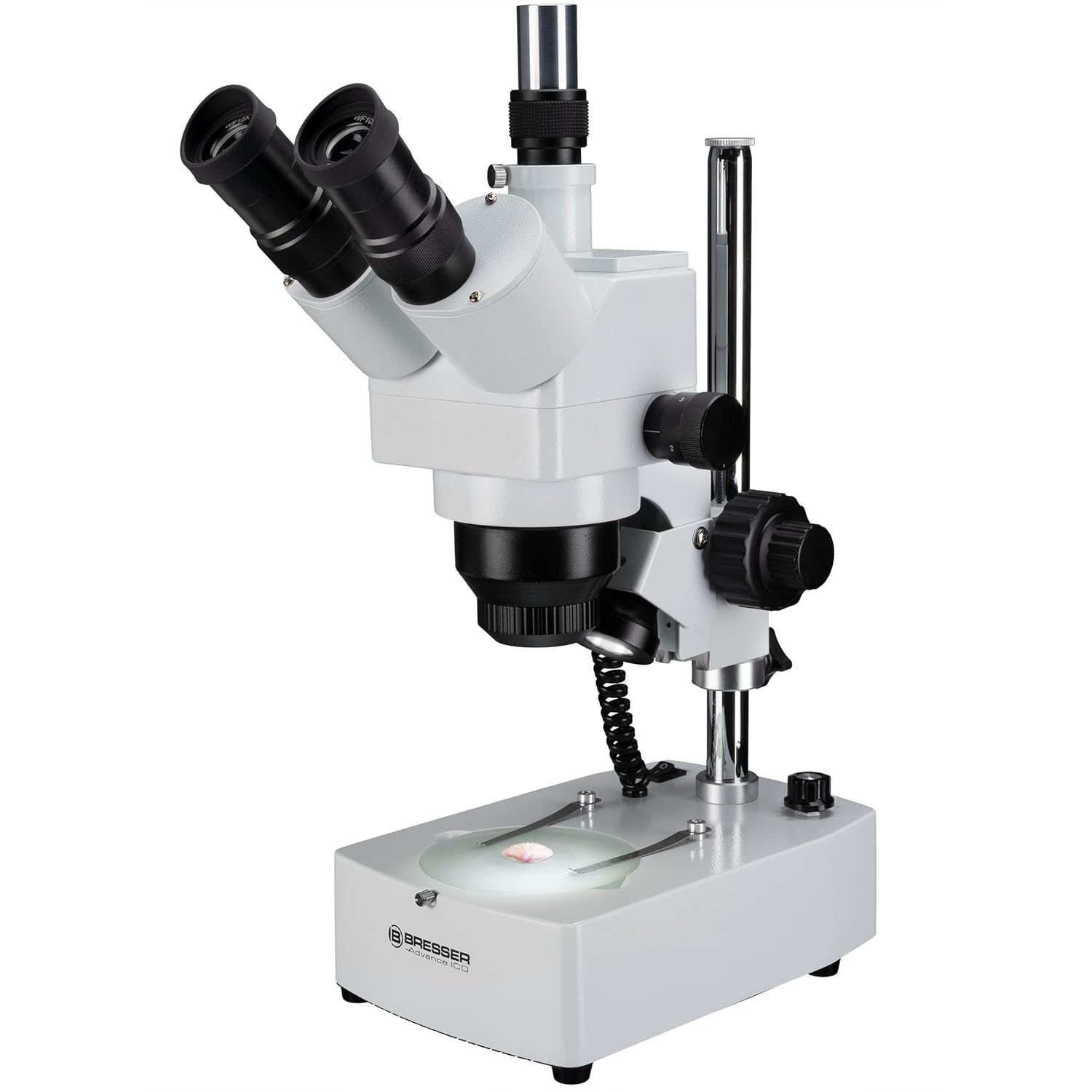 - Das Bresser Advance ICD Mikroskop mit Auflicht- und Durchlichtbeleuchtung und 160-facher Vergrösserung für Anfänger und Experten. Der trinokulare Aufsatz ist für visuelle Beobachtungen und den gleichzeitigen Anschluss einer Kamera ausgelegt.