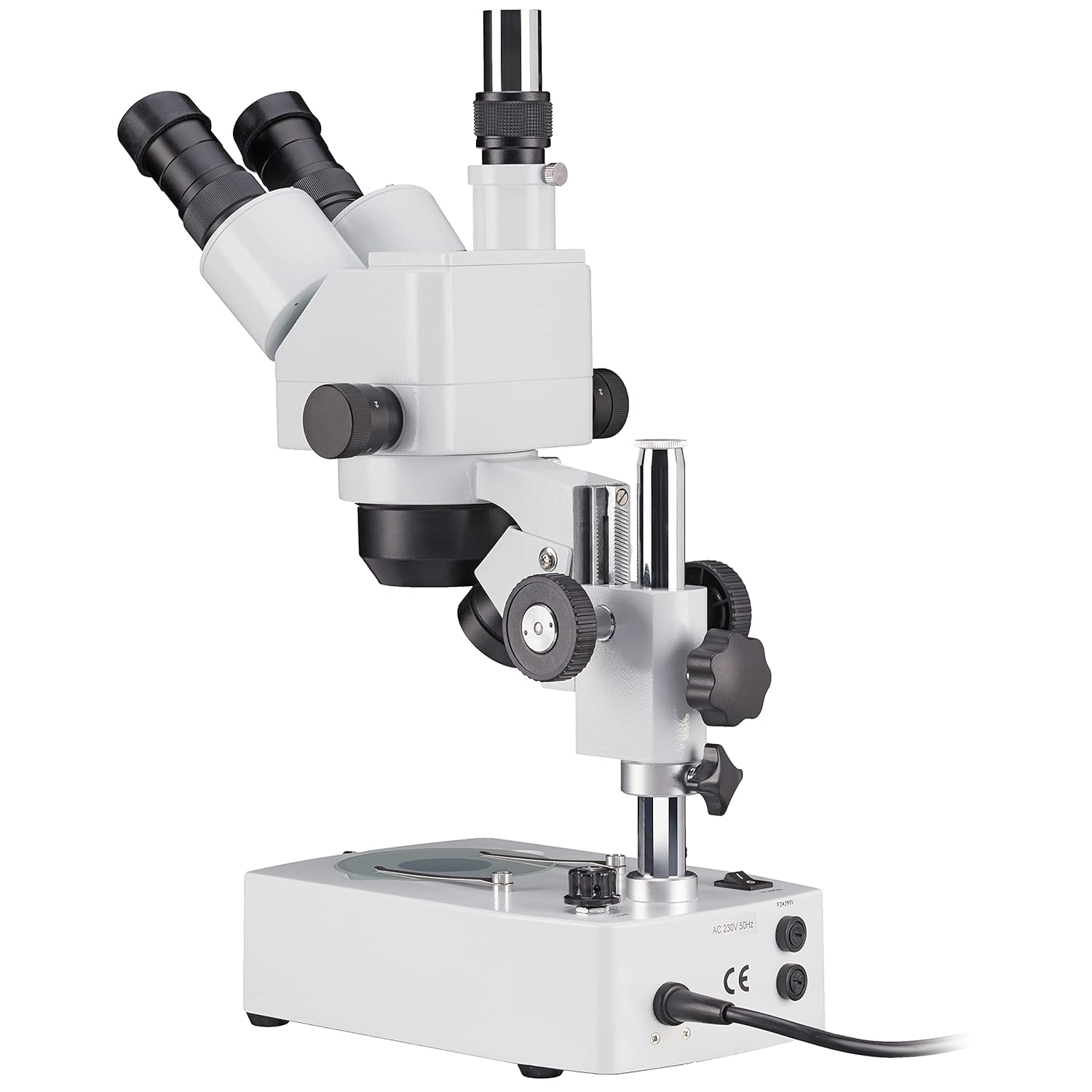 - Das Stereo-Zoomobjektiv in Verbindung mit den Weitfeldokularen ergibt Vergrösserungen von 10x-160x. Der 360° drehbare trinokulare Aufsatz ermöglicht Beobachtungen aus diversen Positionen.