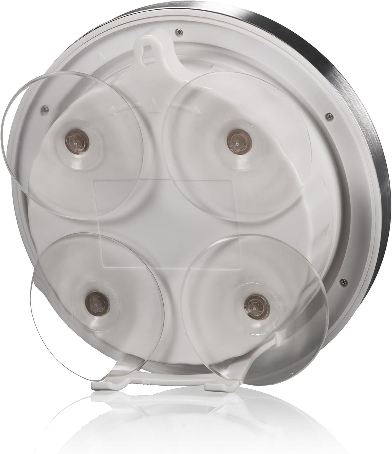 - Durchmesser: 17 cm, Dicke: 6 cm, Gewicht: 334 g, batteriebetrieben mit 1x AA (nicht im Lieferumfang enthalten)