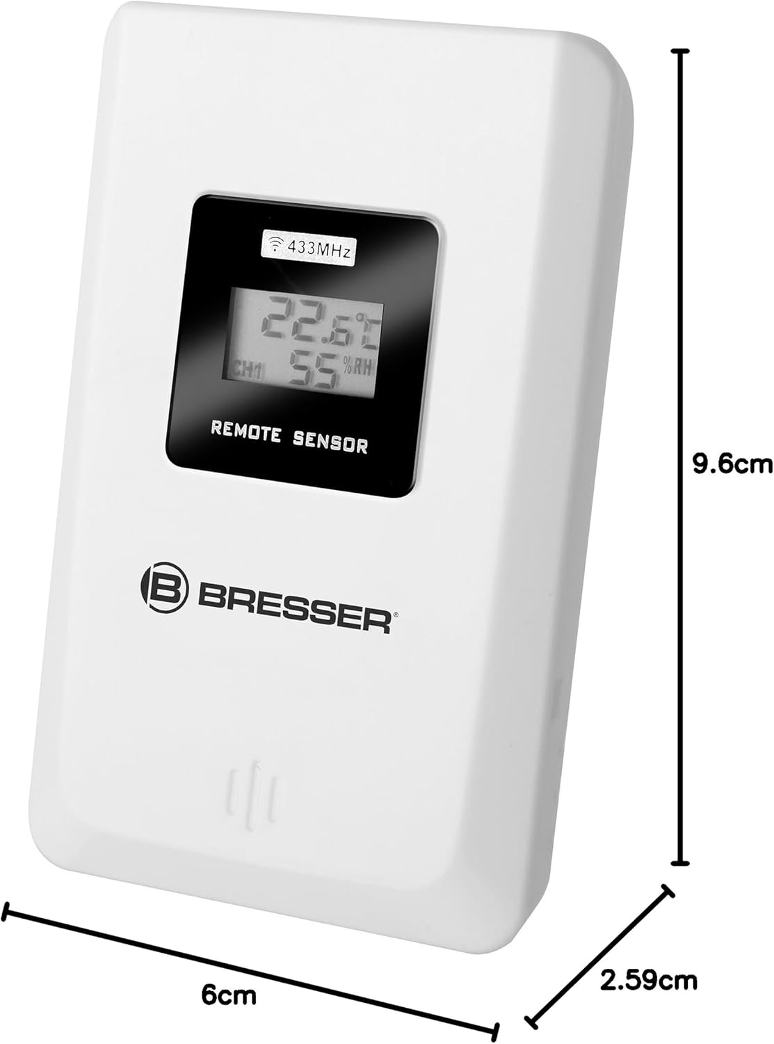 - Der Aussensensor sendet auf 433 Mhz Frequenz und hat im freien eine Reichweite von bis zu 50 Meter. Es können 3 verschiedene Kanäle eingestellt werden, um mehrere Sensoren mit einer Wetterstation zu verbinden.