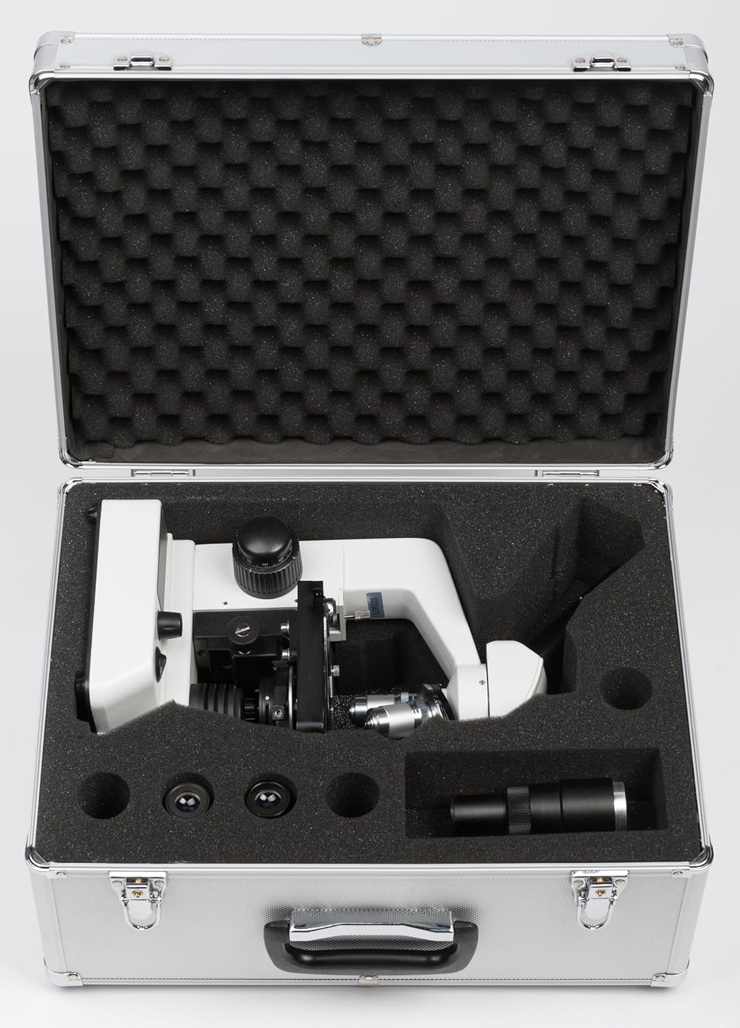 - Der verschliessbare Transportkoffer mit passender Schaumstoffeinlage für Mikroskope ist ideal zur Lagerung und für den Transport von einem Mikroskop.